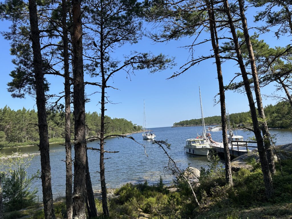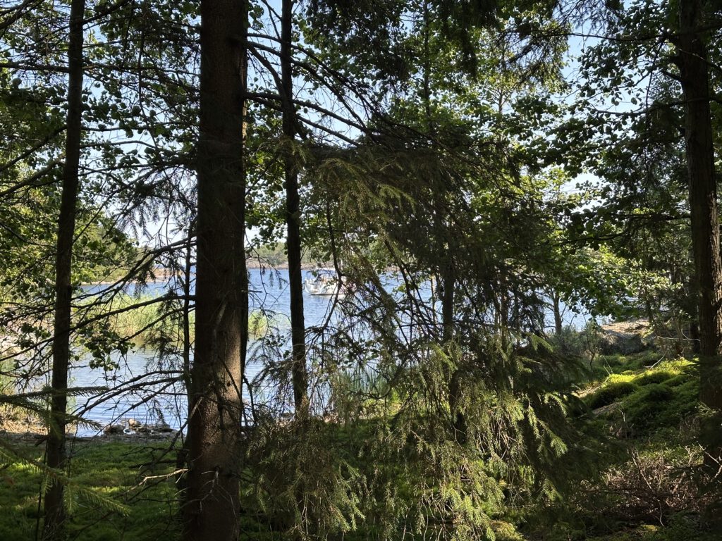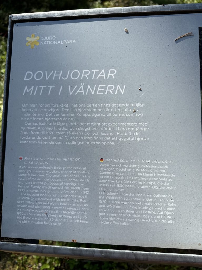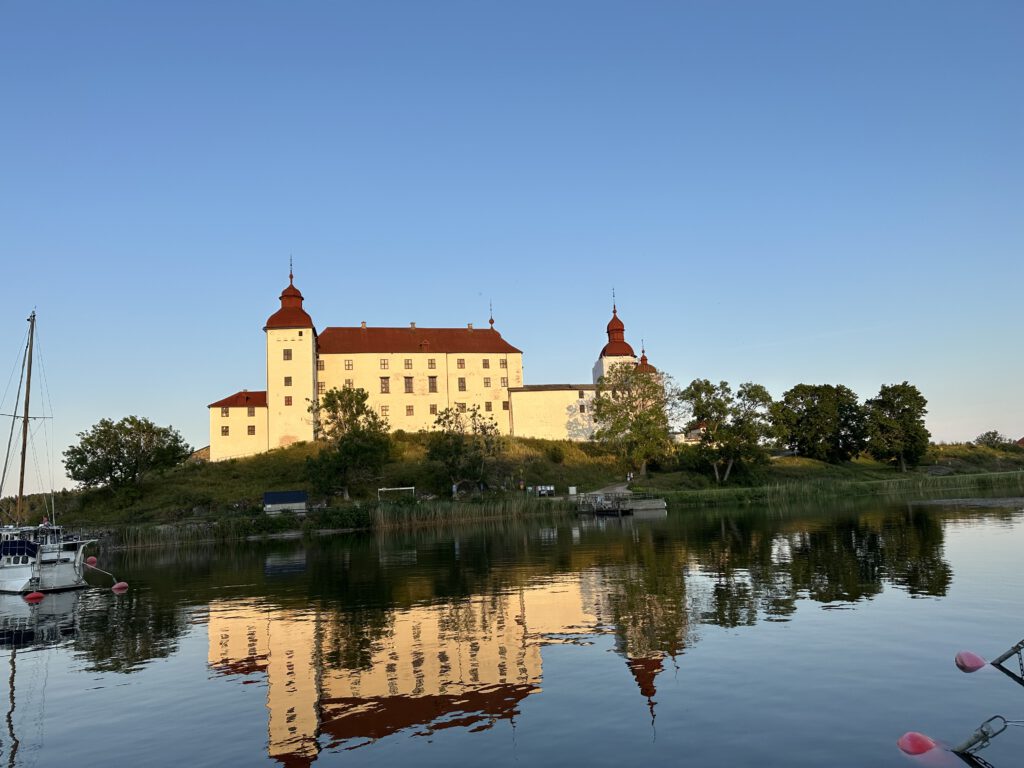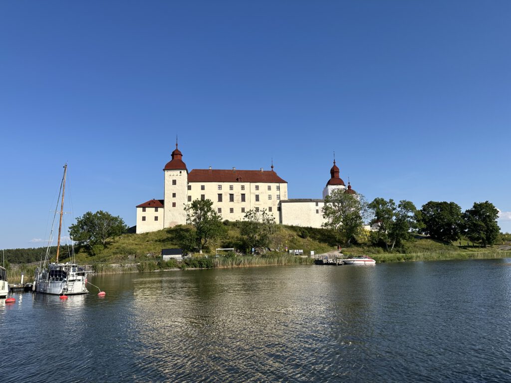 Am Vormittag gehen wir auf der Insel spazieren, am Anfang heißt es, 1 km und dann ist dort eine Freifläche, wo sich häufig Hirsche und Damwild tummelt, dann schläft Kapitän Wirbelwind vor, einen Rundweg zu laufen, wir willigen ein und dann nochmal 2,5 km. Schlussendlich sind wir 1,5 h unterwegs, sehen so wunderschöne Natur und kommen völlig durchgeschwitzt wieder am Schlauchboot an, fahren zurück zum Schiff und gehen erstmal baden und kühlen uns ab (naja, wir Erwachsenen, Kapitän Wirbelwind traut sich nicht weiter rein als bis zum Bauch). Dann legen wir ab und kommen gut 5 h später auf Kållandsö an, im Hafen von Schloss Läckö und bekommen den vorletzten Liegeplatz.