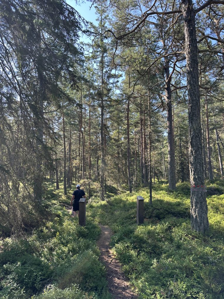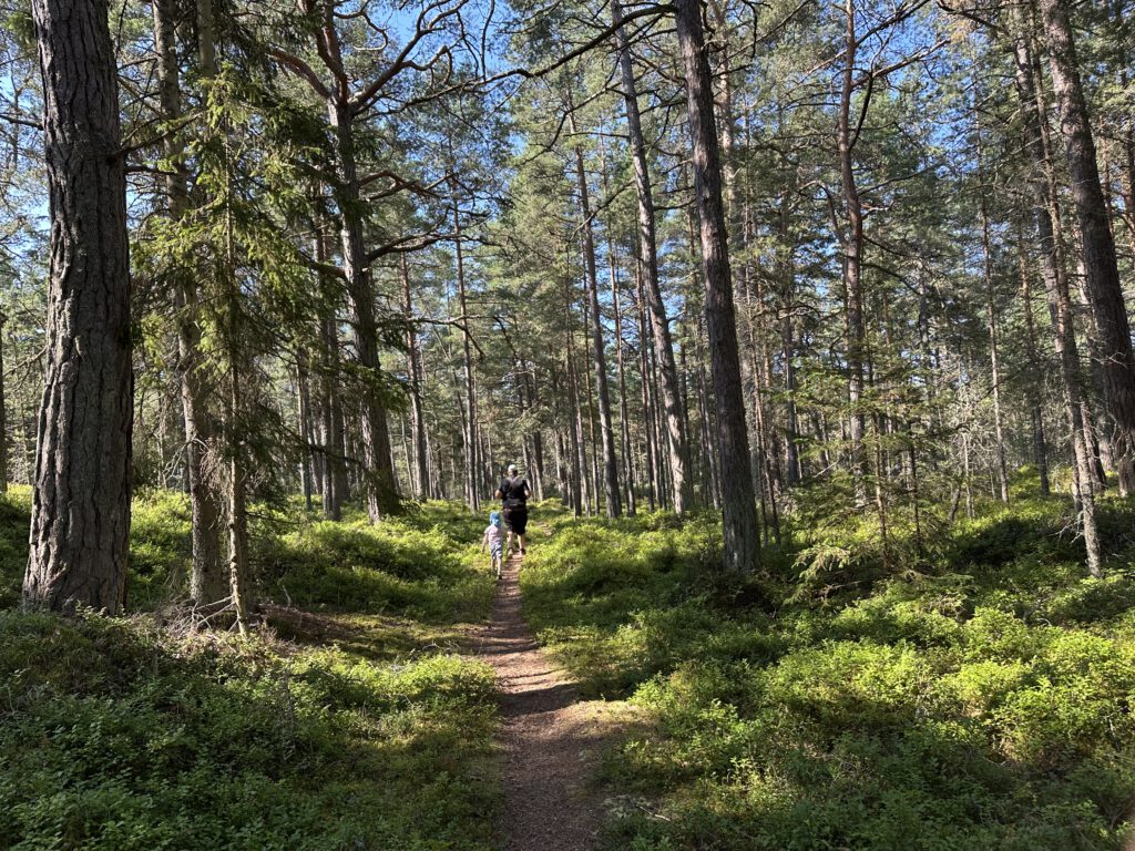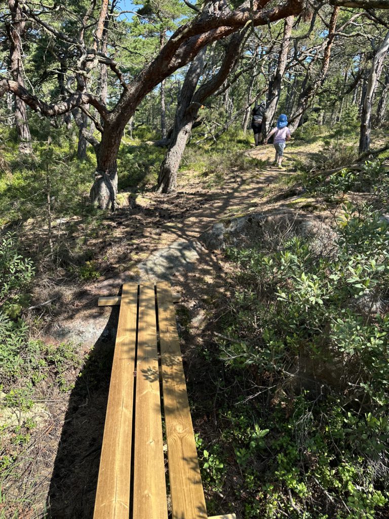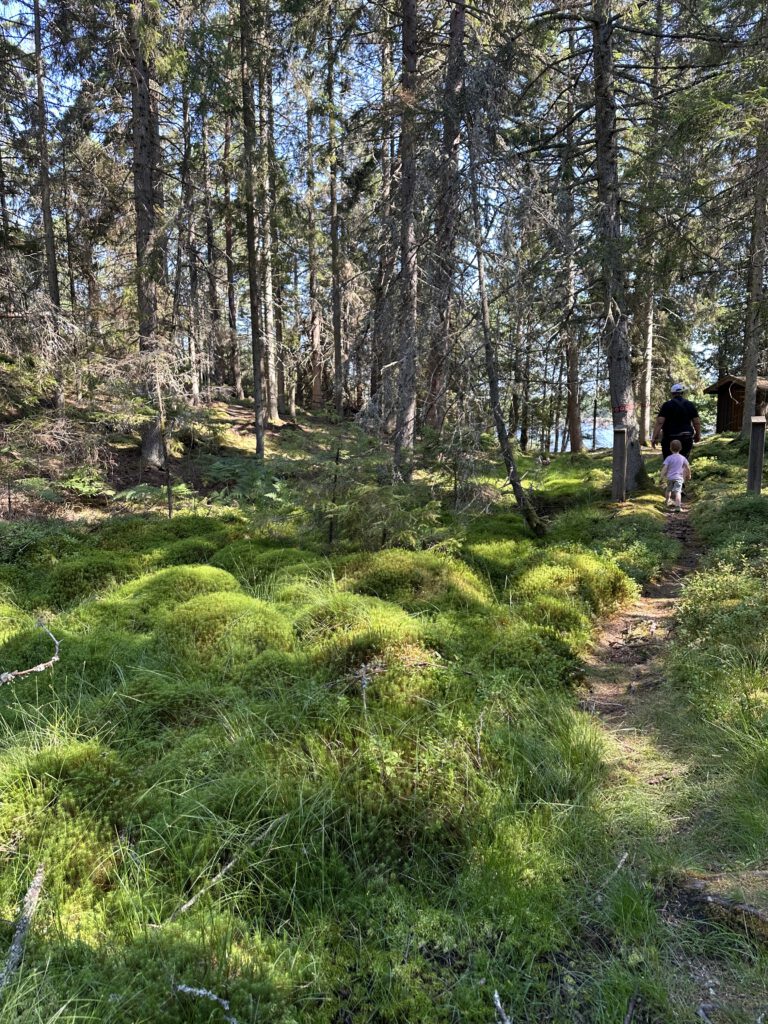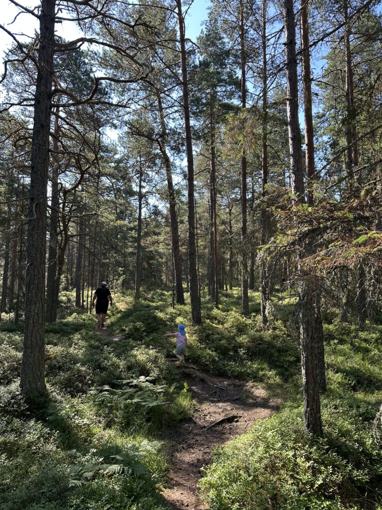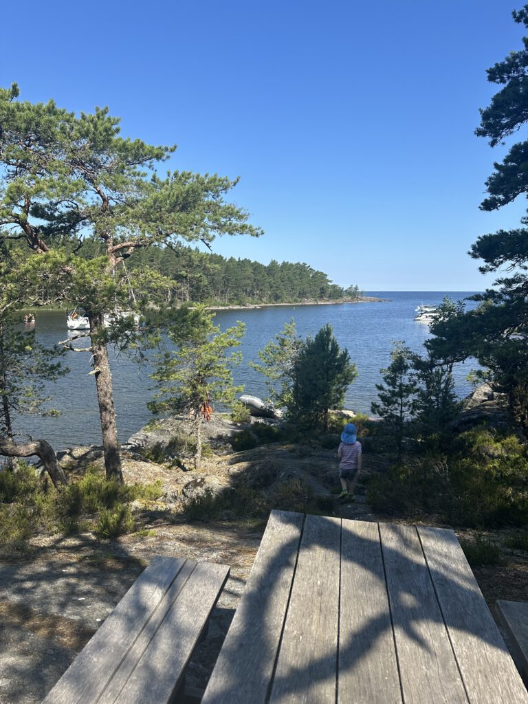 Am Vormittag gehen wir auf der Insel spazieren, am Anfang heißt es, 1 km und dann ist dort eine Freifläche, wo sich häufig Hirsche und Damwild tummelt, dann schläft Kapitän Wirbelwind vor, einen Rundweg zu laufen, wir willigen ein und dann nochmal 2,5 km. Schlussendlich sind wir 1,5 h unterwegs, sehen so wunderschöne Natur und kommen völlig durchgeschwitzt wieder am Schlauchboot an, fahren zurück zum Schiff und gehen erstmal baden und kühlen uns ab (naja, wir Erwachsenen, Kapitän Wirbelwind traut sich nicht weiter rein als bis zum Bauch). Dann legen wir ab und kommen gut 5 h später auf Kållandsö an, im Hafen von Schloss Läckö und bekommen den vorletzten Liegeplatz.
