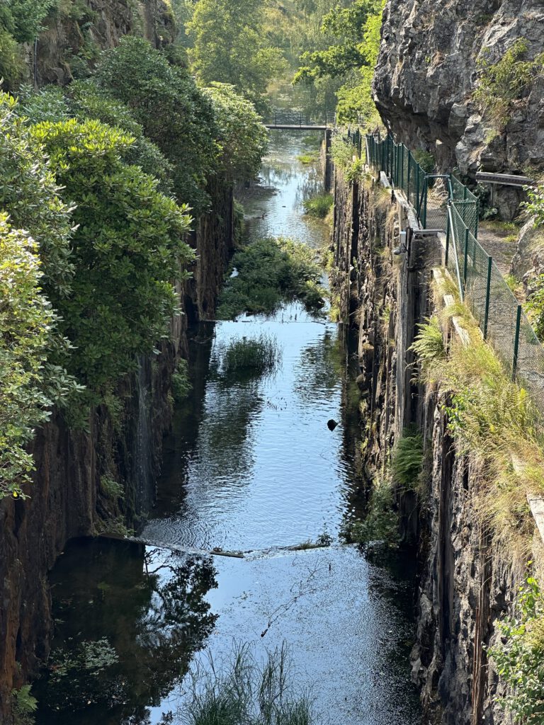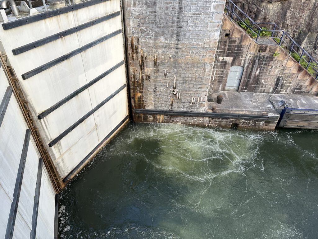 Ich laufe mit Kapitän Wirbelwind bis zum Unterwasser. Ein tolles Erlebnis – so nah an der Technik und Geschichte dran zu sein. Die vielen Höhenmeter machen uns nur etwas zu schaffen bei 25 Grad C.
