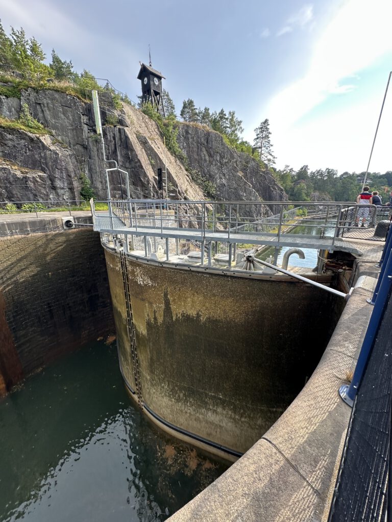 Am Nachmittag schauen wir uns die Schleusentreppen von Trollhättan an – ein echtes Highlight! Insgesamt gibt es hier drei Generationen von Schleusenanlagen, die jeweils gebaut wurden, um den wachsenden Anforderungen der Schifffahrt gerecht zu werden.