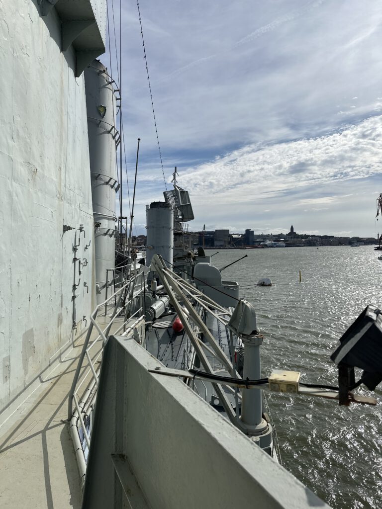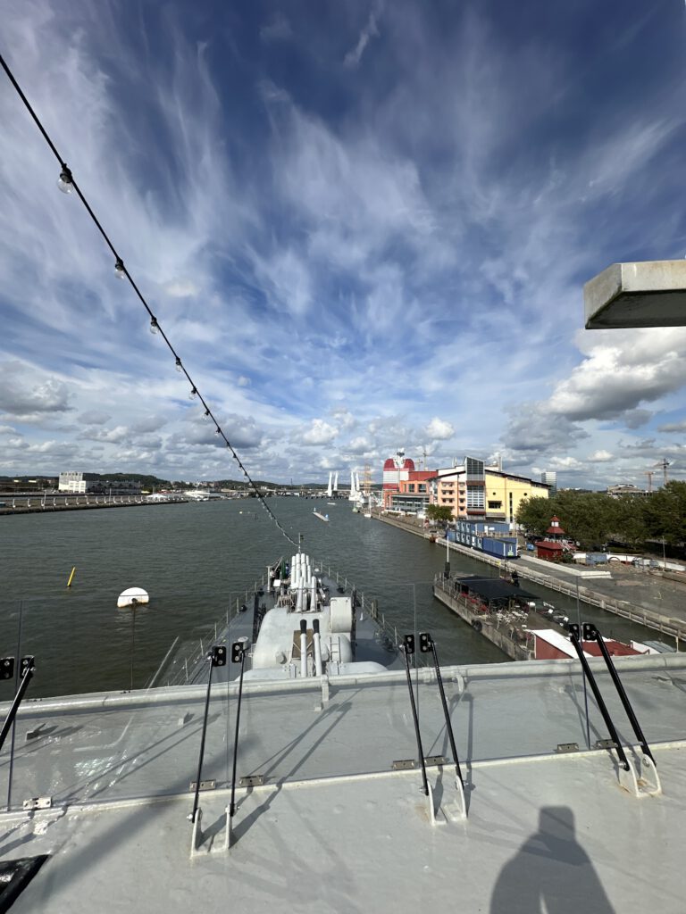 Die HMS Småland wurde in den 1950er Jahren gebaut und zählt zu den größten Kriegsschiffen, die in Skandinavien öffentlich zugänglich sind. Viele Bereiche sind offen begehbar – darunter die Brücke, der Maschinenraum, die Unterkünfte der Besatzung und das offene Deck mit seinen eindrucksvollen Geschützen. Auch wenn die Wege an Bord manchmal eng sind, lässt sich alles gut erkunden.