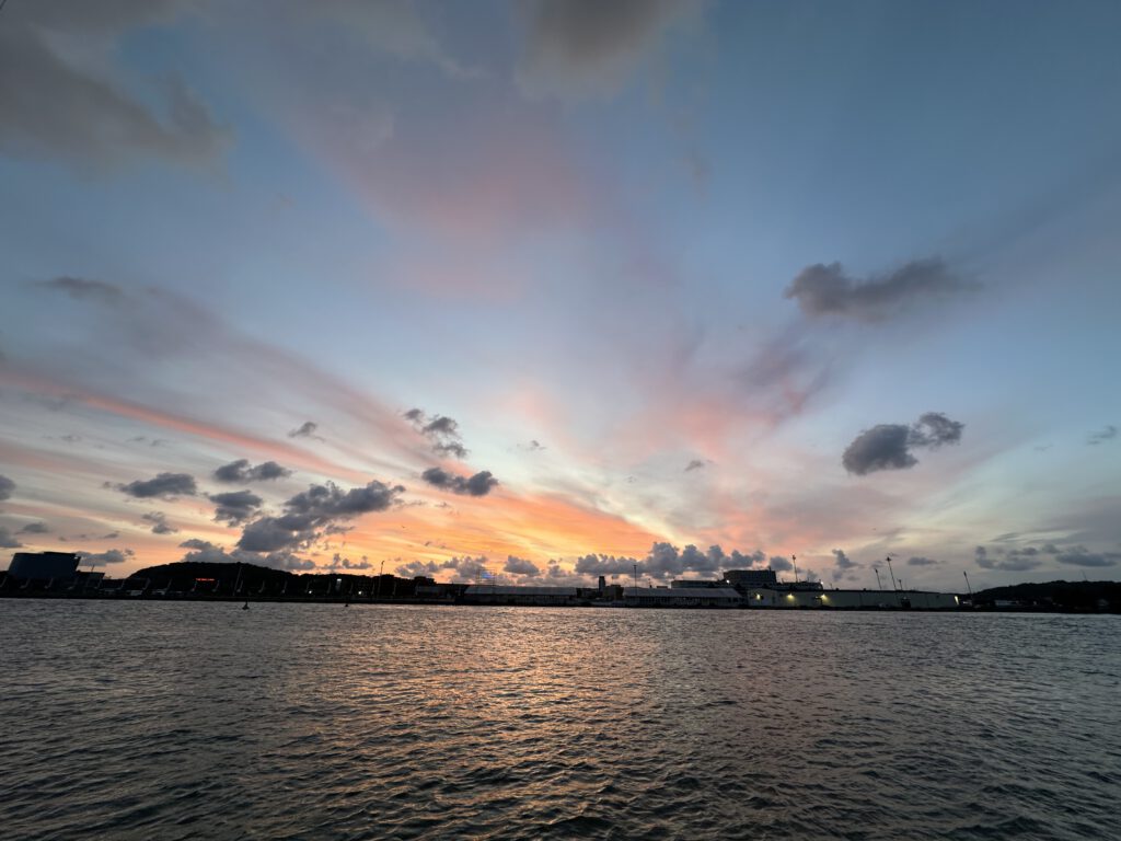 Am Nachmittag besuchen Kapitän Wirbelwind und Paul das Maritiman in Göteborg. Julia und der Mini-Matrose machen währenddessen einen kleinen Spaziergang am Hafen – denn mit Babytrage und begrenzter Begeisterung für enge Schiffsgänge und steile Treppen ist so ein Museumsbesuch eher weniger reizvoll.