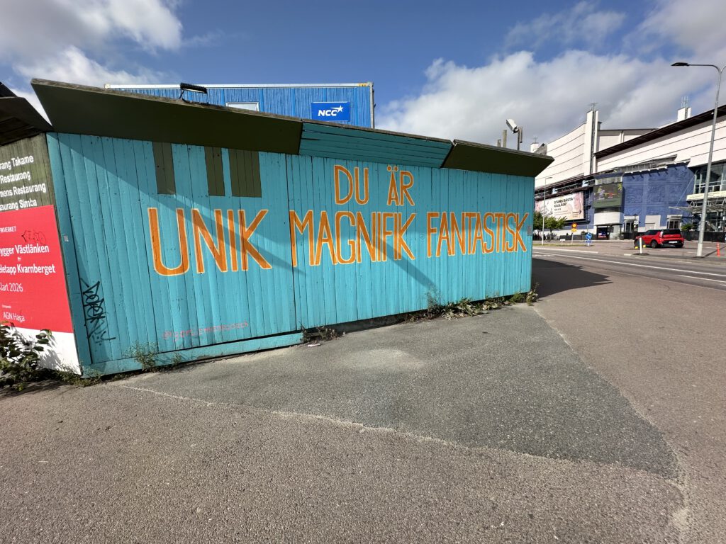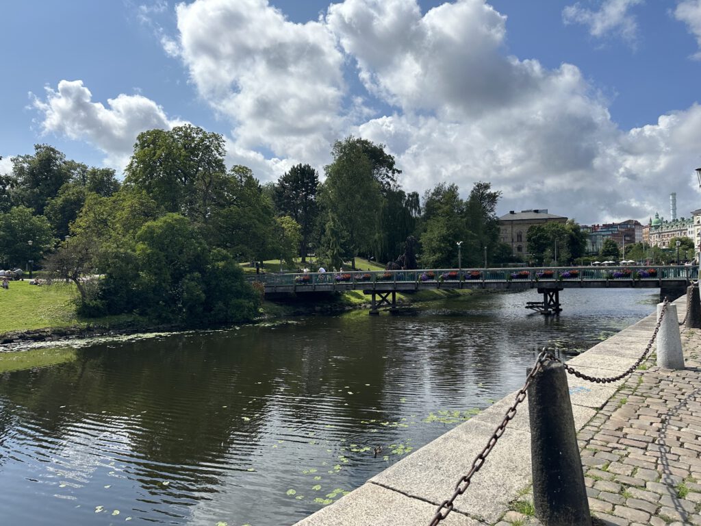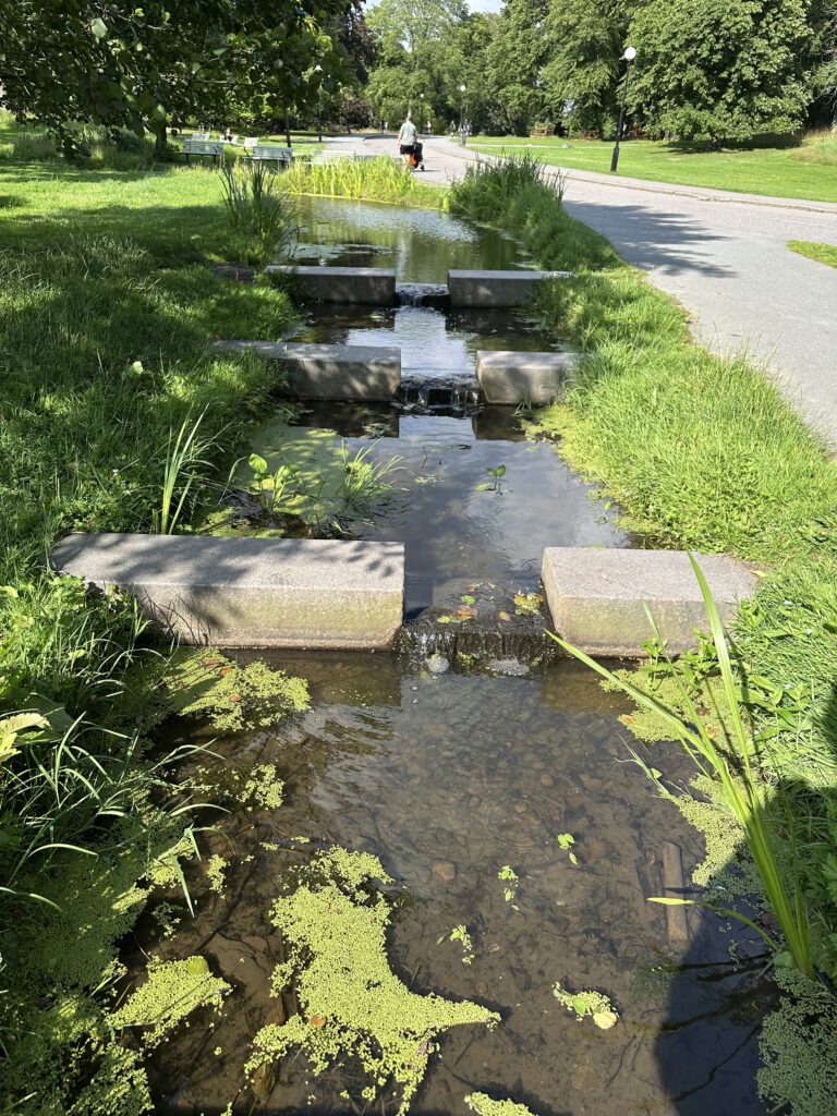 Im Anschluss machen wir uns auf den Weg zu dem großen Slottsskogen-Park: Da es zum Laufen zu weit ist, nehmen wir die Straßenbahn, auch hier hält man zwar die Kreditkarte oder das Handy an den Entwerter, muss aber zum Aussteigen nicht wieder ranhalten, sondern die Zeit für das normale Ticket läuft einfach los.