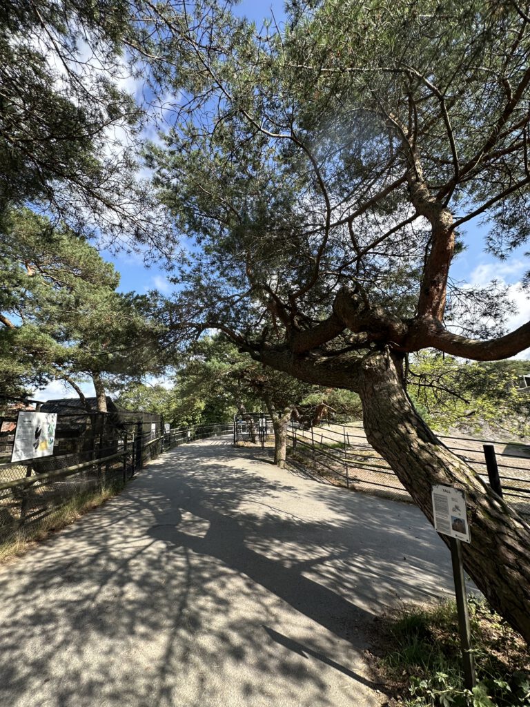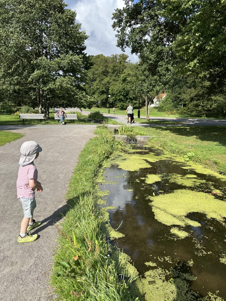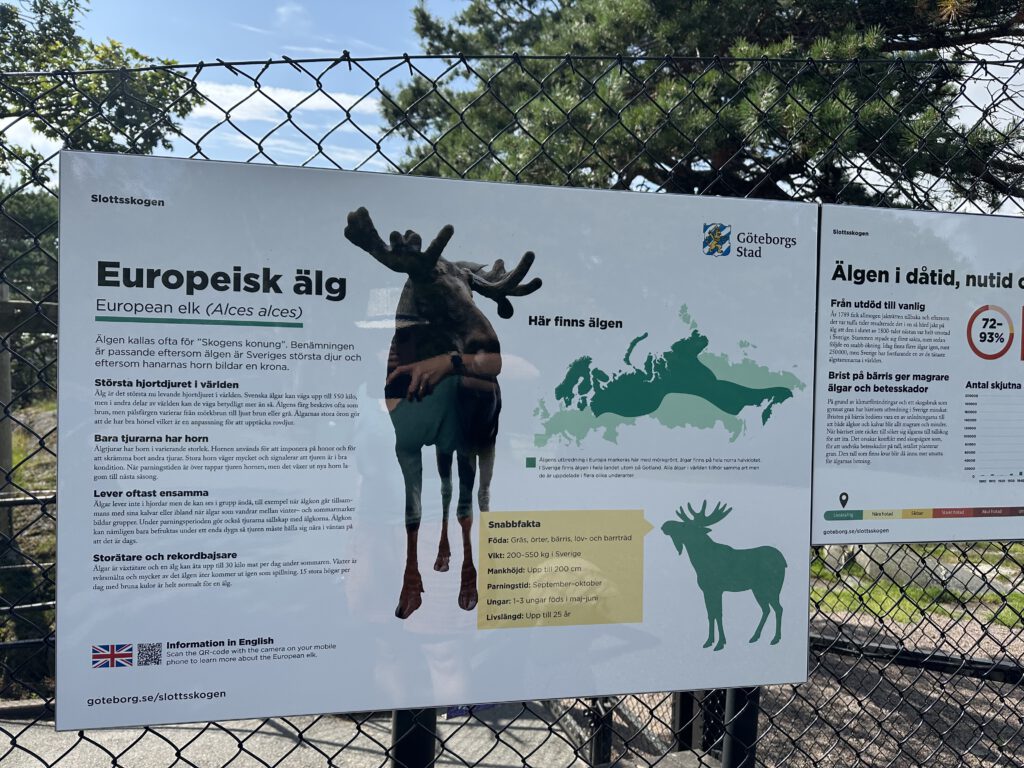 Der Park ist riesig, er hat einige Tiergehege (sogar Elche!), einen Streichelzoo und den vielleicht größten Spielplatz in Schweden. Es gefällt uns unheimlich gut hier, leider sehen wir keine Elche. Sie gehen wohl ihre eigenen Wege außerhalb von Fütterungszeiten. Allein der Spielplatz wäre der Weg hierher wert.