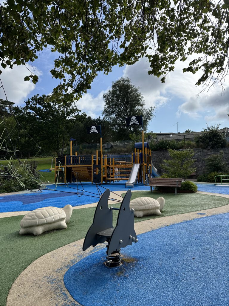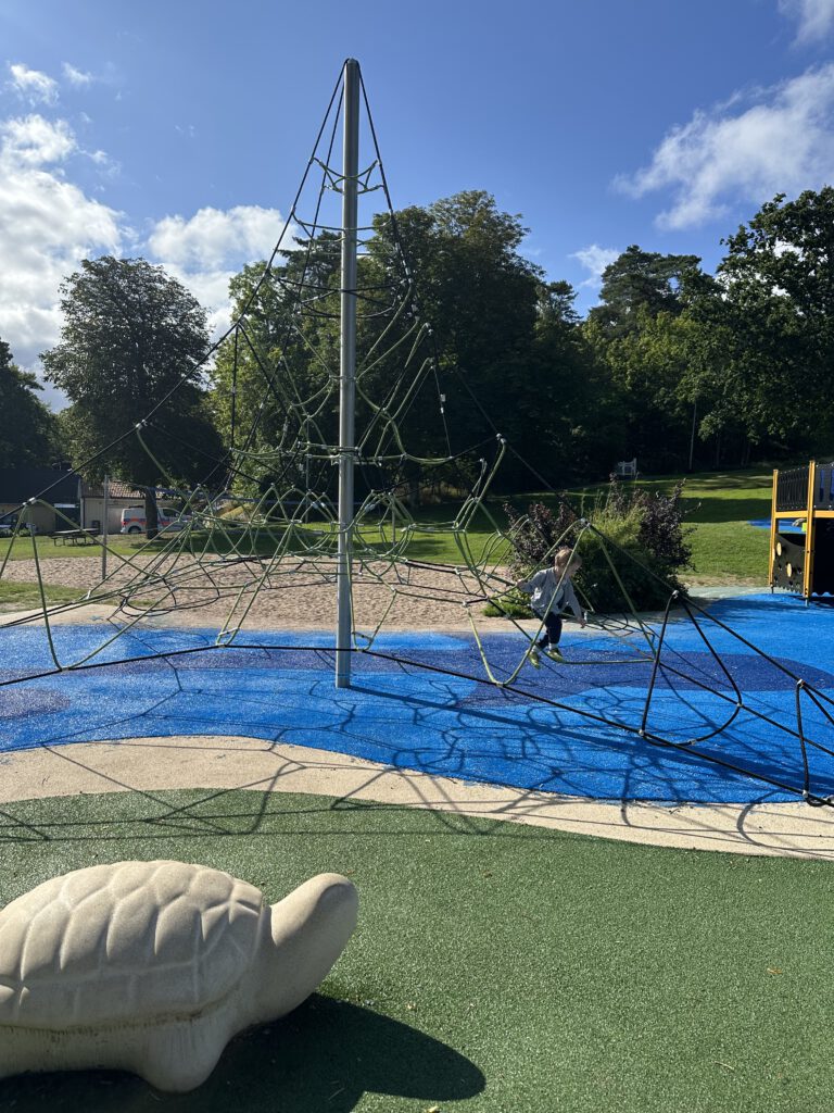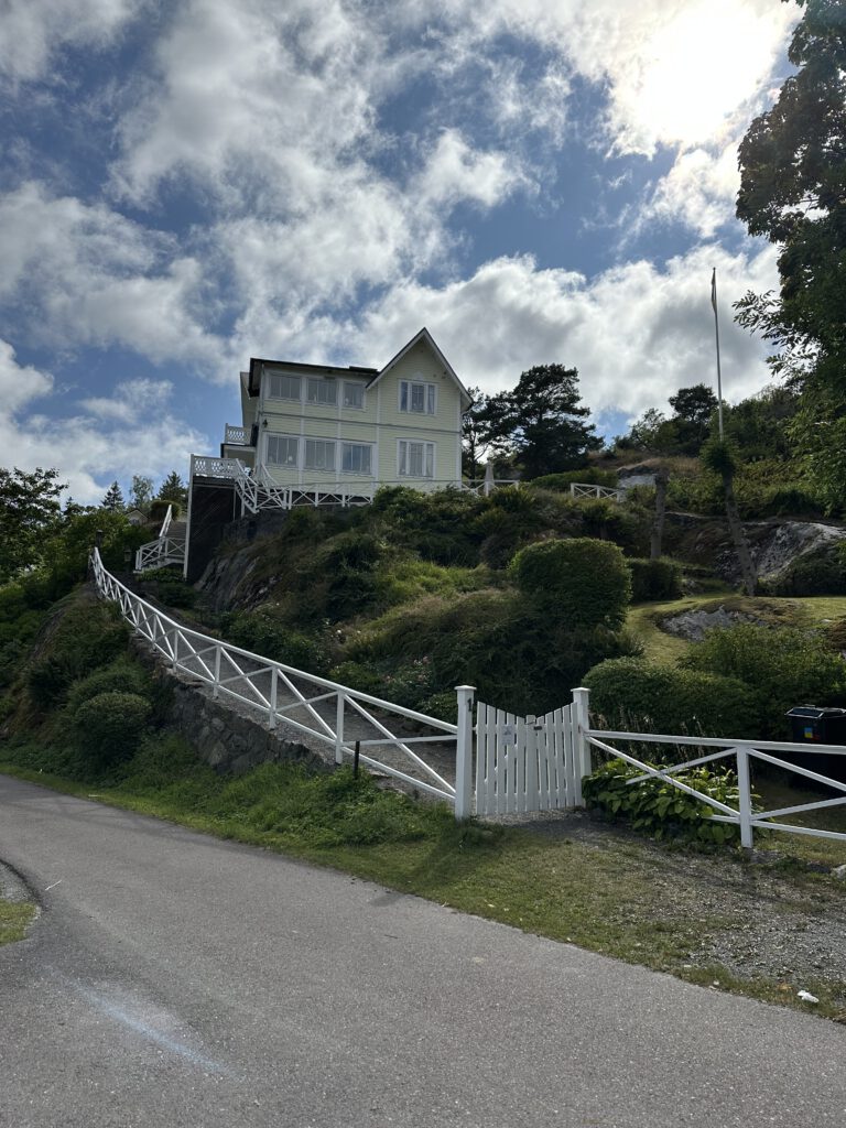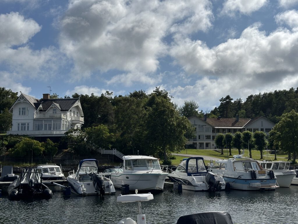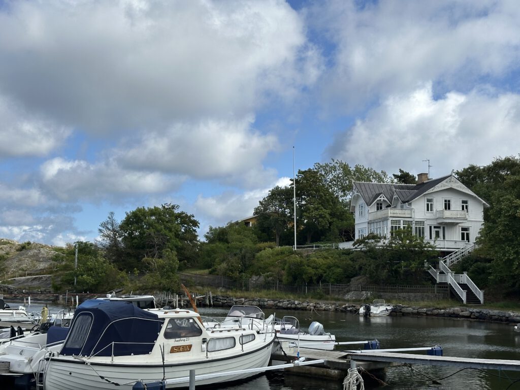 Bei der Recherche über lohnenswerte Schärenziele direkt vor Göteborg stoßen wir auf Styrsø, eine niedliche Insel mit Fähranleger zu einigen anderen Schäreninseln, einem großen Altenheim direkt am Hafen, einem super Spielplatz, auf dem wir dann täglich sind und per se „autofrei“. Man sieht nur ein paar wenige Autos, die scheinbar vom Festland stammen, wie z.B. vom Energieversorger. Ansonsten fahren hier Caddys rum (tatsächlich aber auch ziemlich zackig unterwegs) und Lasten-Motorroller.