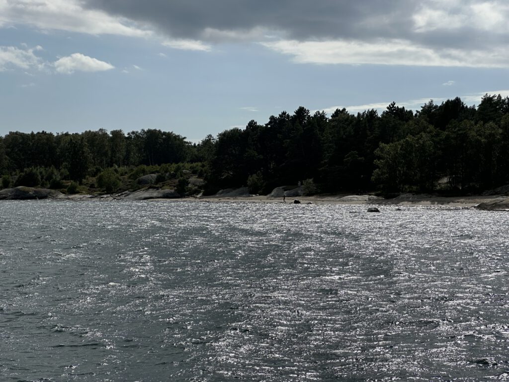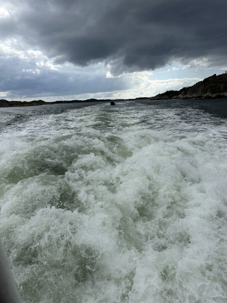 Nachmittags nehmen wir eine Schnellfähre und düsen durch die Schären, zum ÖPNV-Preis! Kapitän Wirbelwind ist begeistert und so sehen wir noch einige der nahegelegenen Schäreninseln. Das Wetter ist leider durchwachsen und als wir das zweite Mal aussteigen, fängt es an zu regnen und wir entscheiden kurzfristig, direkt mit der nächsten Fähre in 20 min wieder zurückzufahren, diesmal eine direkte Verbindung zurück.
