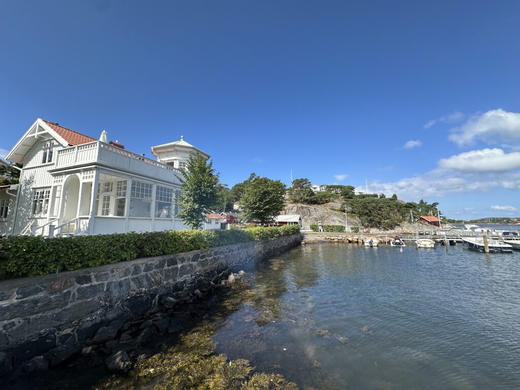 Paul baut währenddessen den in Göteborg erworbenen Wechselrichter ein und verpasst daher das schöne Städtchen. Einmal biegen wir in eine geheimnisvolle Gasse ab, und finden uns auf einem süßen kleinem Privatsteg wieder, direkt zwischen vielen schönen Häusern, die einen wunderschönen direkten Meerblick haben. Wissen diese Menschen eigentlich, wie wunderschön sie wohnen?????
