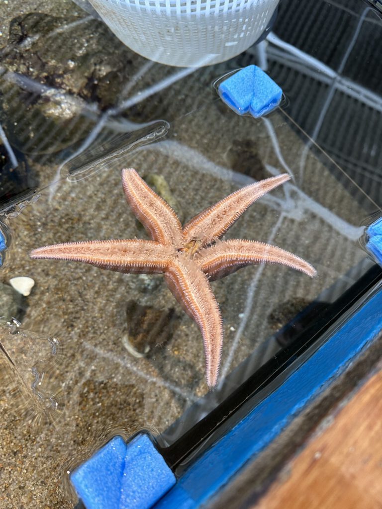 Vor dem Kattegatcentret in GrenaaMajestätische RochenDieser Seestern verspeist gerade eine Muschel (nur das Muschelfleisch, ohne Schale). Uns wird erklärt, dass dies über eine Stunde dauern kann, weil er es mit dem Maul verspeist, Seesterne können aber wohl auch ihren Magen „nach außen verlagern“, so haben wir es jedenfalls verstanden, dann dauert dies eher ein paar Minuten.BabykinoNeuer InnenspielplatzPfeilschwanzkrebsNatürlich sind wir wieder bei der Schatzsuche am Start =)In der Schale sitzt das diesjährige Küken eines Pinguinpaares (und erst das dritte Küken überhaupt im Kattegatcentret)Wir fragen uns: Brütet hier noch ein Pärchen?Gebiss eines Walhais Wasserspielplatz draußen„Hafenkino“ – Schiff fährt beim Anlegen gegen einen Halben
