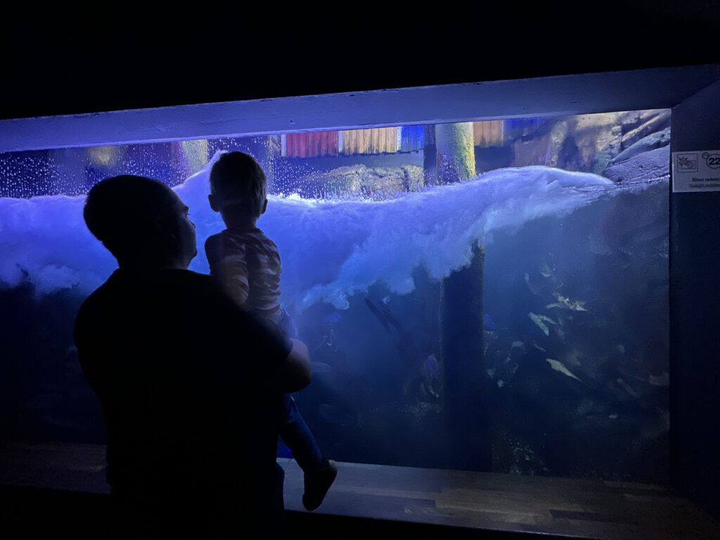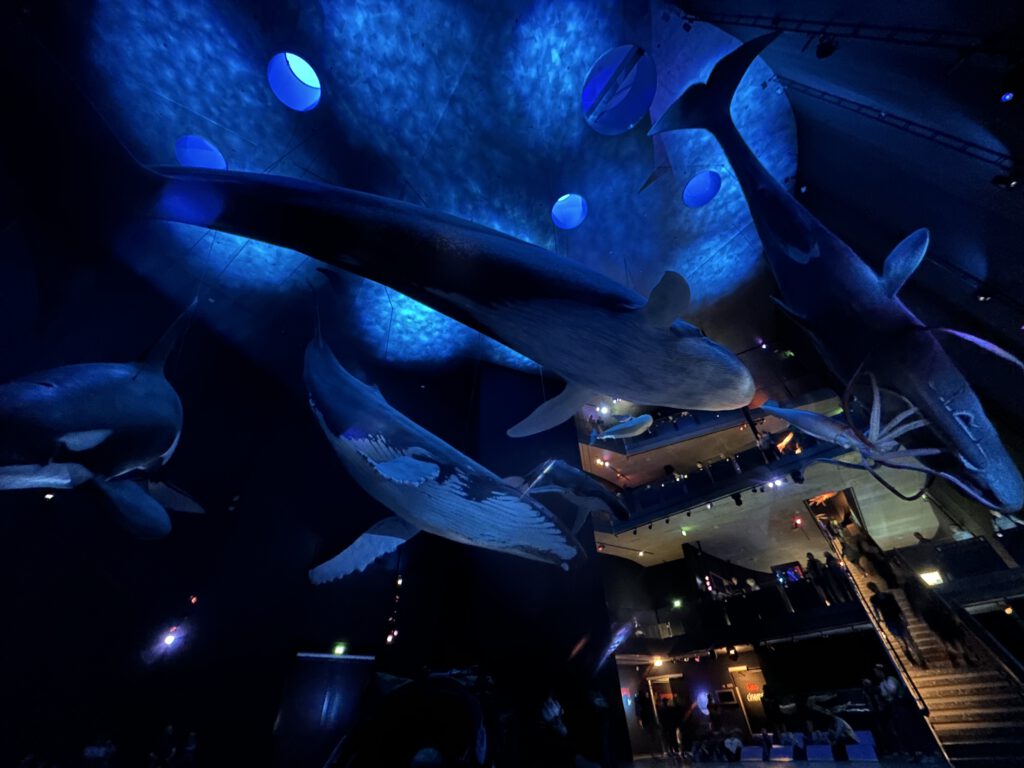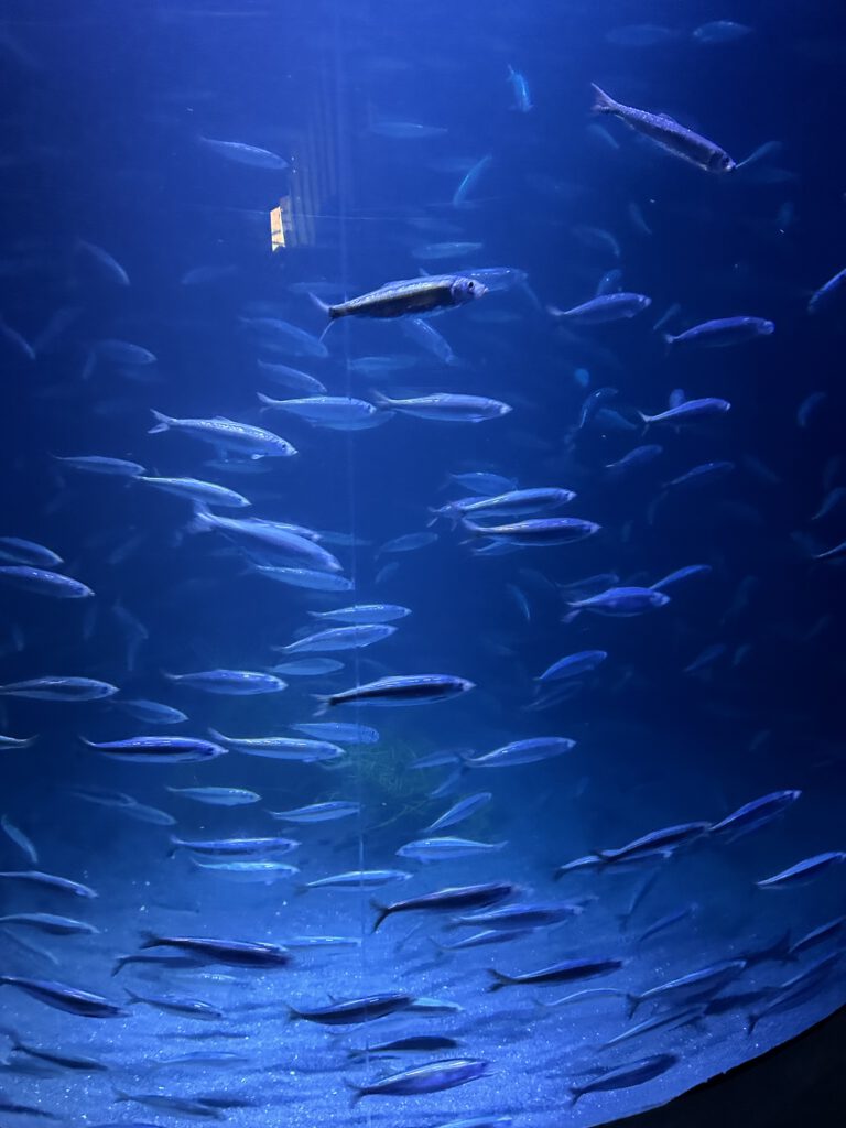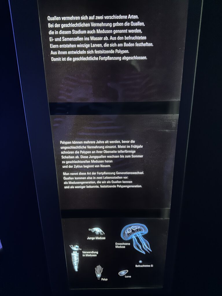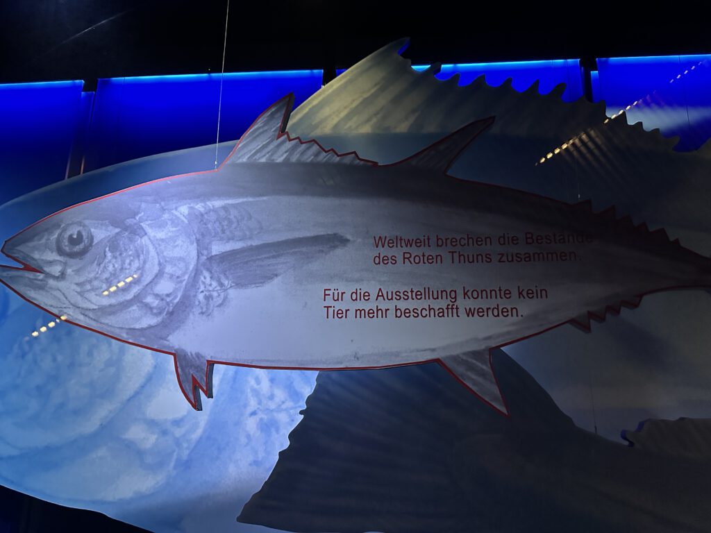 Danach machen wir uns auf den Weg ins Ozeaneum. Diese Idee hatten allerdings auch sehr viele andere. Da das Museum keine Besucherobergrenze hat, ist es rappelvoll. Um die Luft etwas zu verbessern, sind Klappen nach außen geöffnet – dadurch zieht die feuchte Luft herein. Mit den Hunderten Besuchern wird es ziemlich eng und ungemütlich, und an vielen Stellen kommt man kaum durch das Gedränge. Keine ganz glückliche Entscheidung für heute.