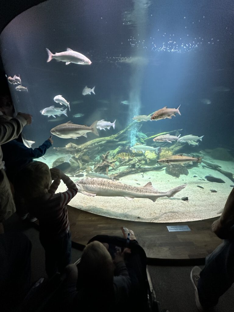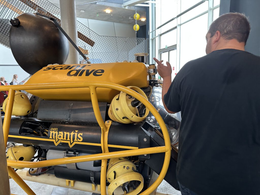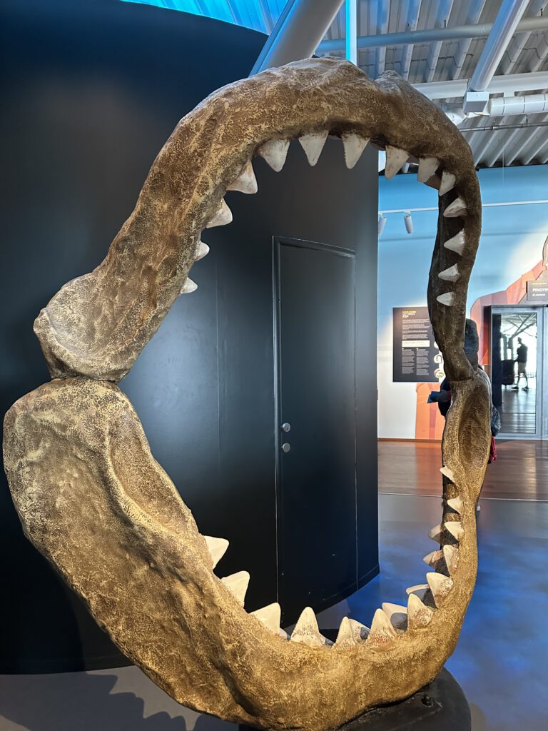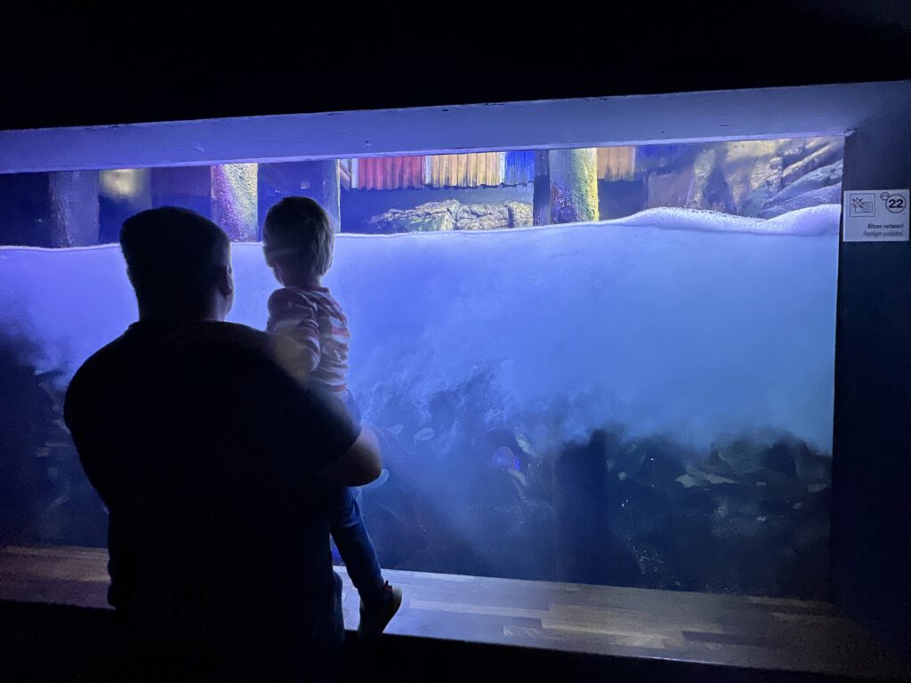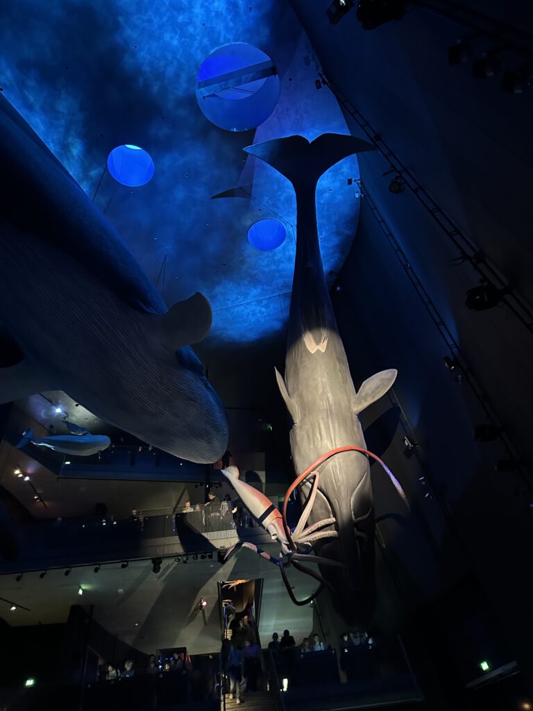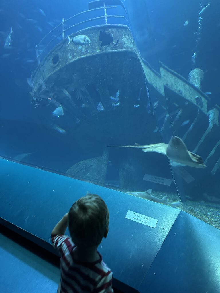 Danach machen wir uns auf den Weg ins Ozeaneum. Diese Idee hatten allerdings auch sehr viele andere. Da das Museum keine Besucherobergrenze hat, ist es rappelvoll. Um die Luft etwas zu verbessern, sind Klappen nach außen geöffnet – dadurch zieht die feuchte Luft herein. Mit den Hunderten Besuchern wird es ziemlich eng und ungemütlich, und an vielen Stellen kommt man kaum durch das Gedränge. Keine ganz glückliche Entscheidung für heute.