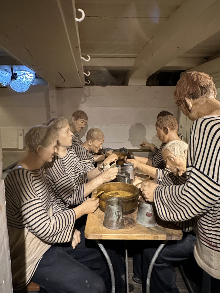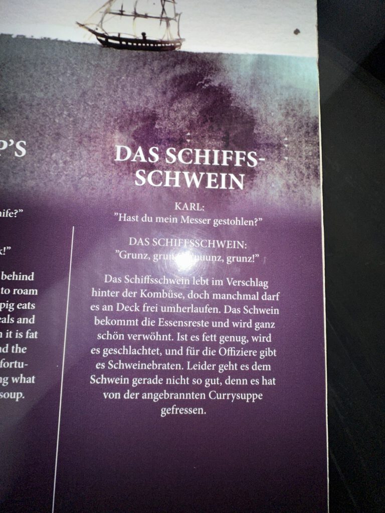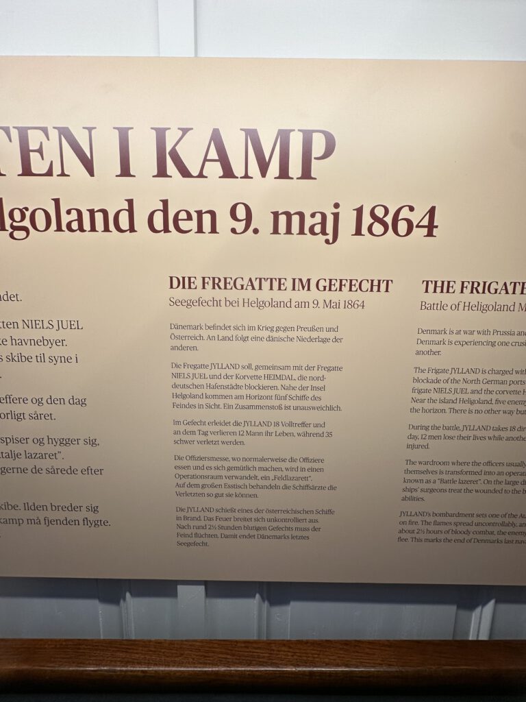 Die Fregatte Jylland gefällt uns gut, die Schatzsuche über die Flaggen taugt leider nur teilweise etwas, da die Antworten häufig mehrdeutig sind. Dennoch macht es Spaß und man kann sich kaum alles ansehen und anhören, wenn man mit zwei kleinen Kindern unterwegs ist. Ich könnte direkt 2 h länger hier bleiben und den Audioguide durchhören.