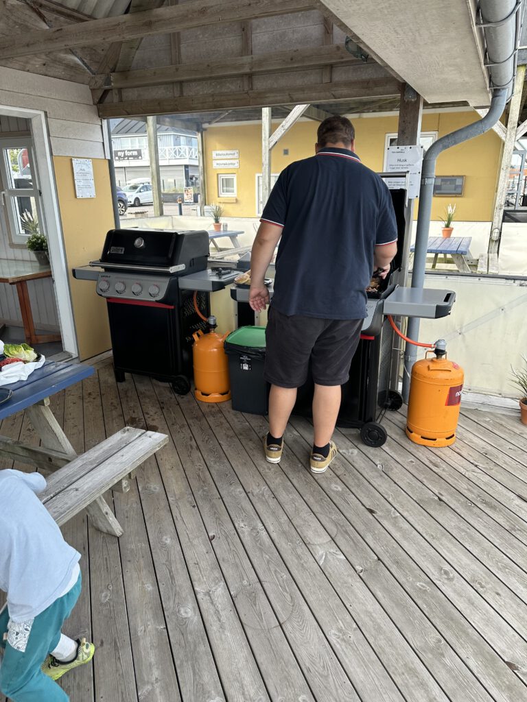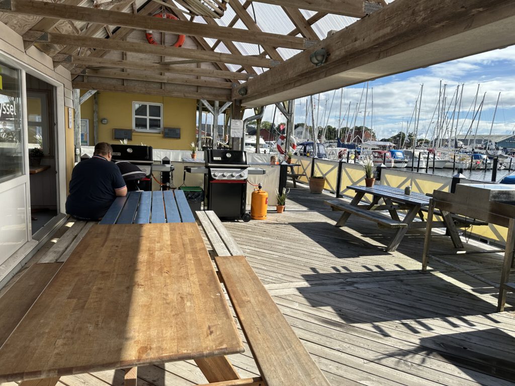 Die Grillterrasse des Segelclubs mit neuen Weber Gasgrills darf man mitbenutzen… machen wir- es gibt mal wieder Burger seit Längerem