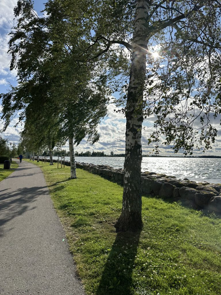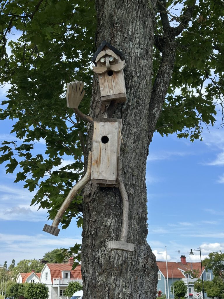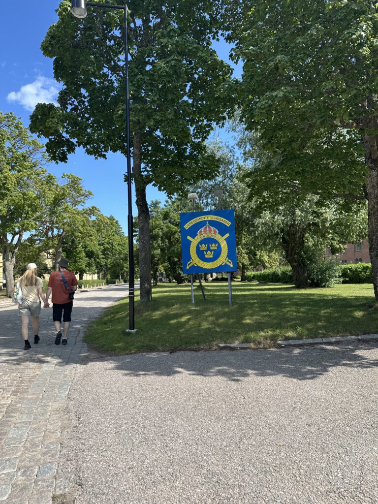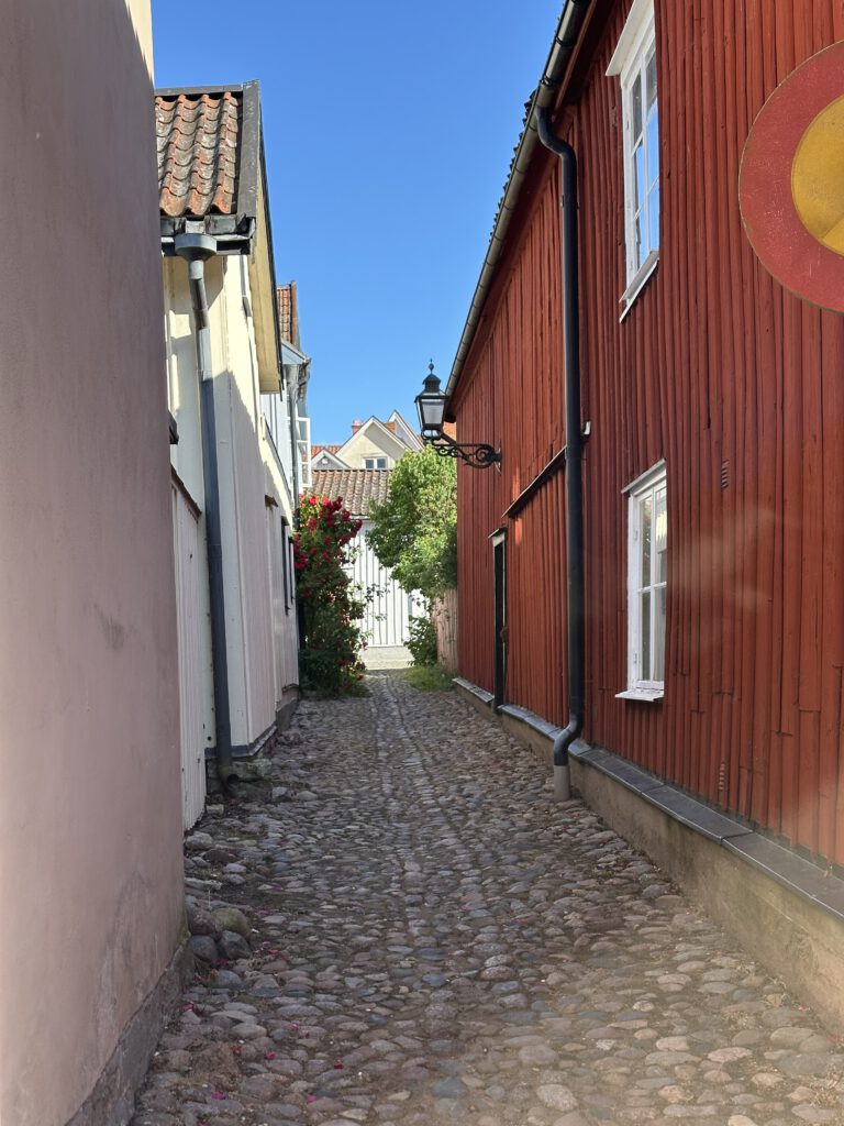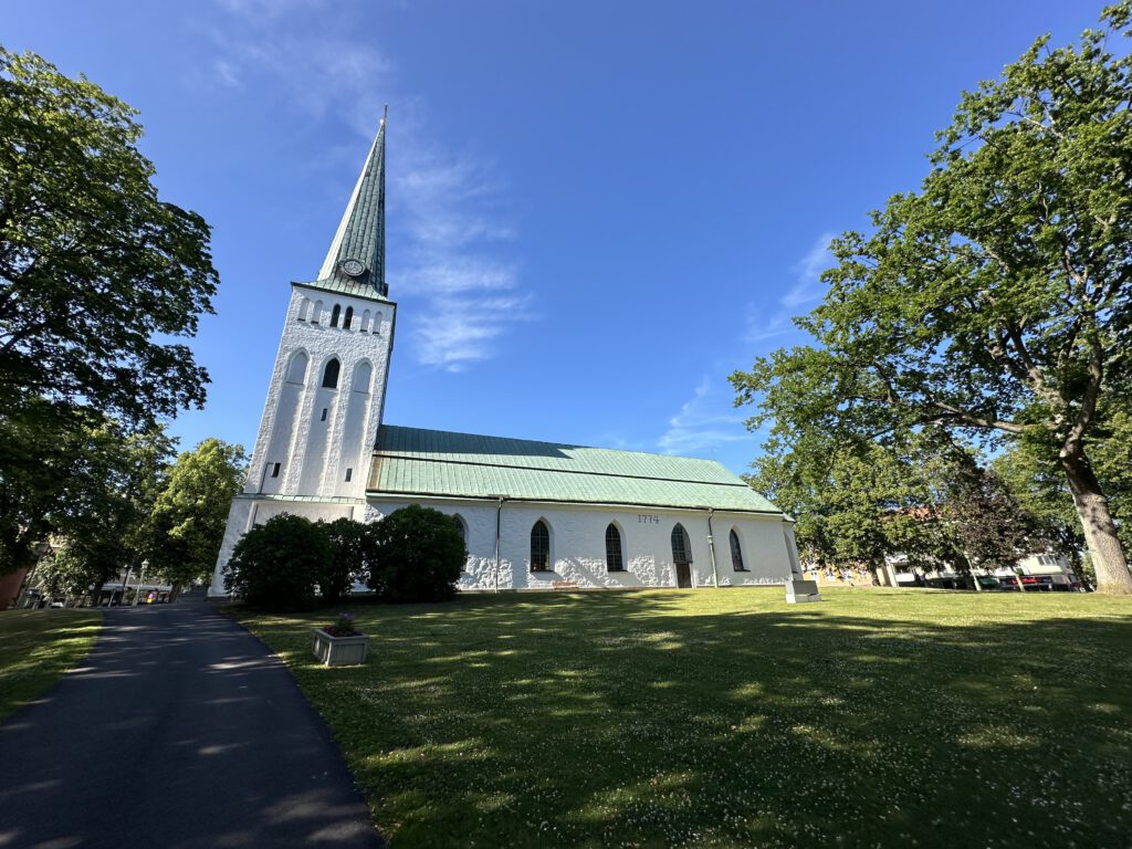 Als wir eine wunderschöne Klaviermelodie hören, suchen wir den Pianisten und setzen uns auf eine Bank in seiner Nähe, um der Musik zu lauschen. Es stellt sich heraus, dass es sich um den Pfarrer handelt, der heute für deinen Musiker einspringt. Es handelt sich um einen sehr netten deutschen Pfarrer, der mit dieser wunderschönen Musik gespielt die Zeit bis zu seinem Gottesdienst um 18:00 Uhr überbrückt – diesen würde er im Sommer jeden Abend um 18:00 Uhr abhalten. Er erzählt uns, als wir endlich gegenseitig verstanden haben, dass wir alle Deutsche sind, dass er vor 30 Jahren nach Schweden ausgewandert und sehr glücklich hier in Schweden und dieser schönen Stadt sei; die Winter seien aber schon lang und dunkel. Man sieht wenig Menschen auf den Straßen im Winter, die Menschen sind viel in ihren Häusern. Im Sommer lebt alles auf, und das Leben findet dann vor allem draußen statt.