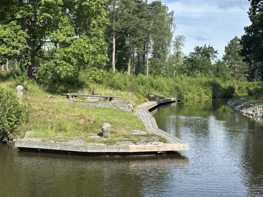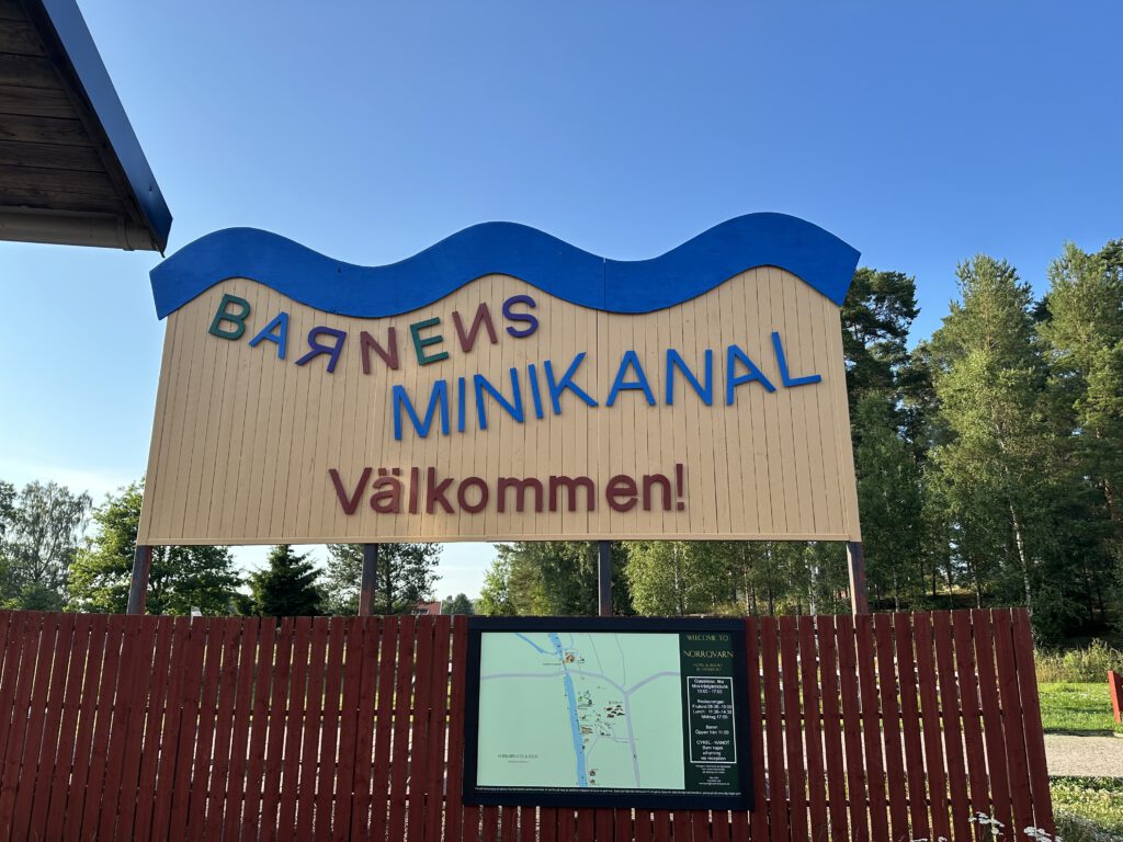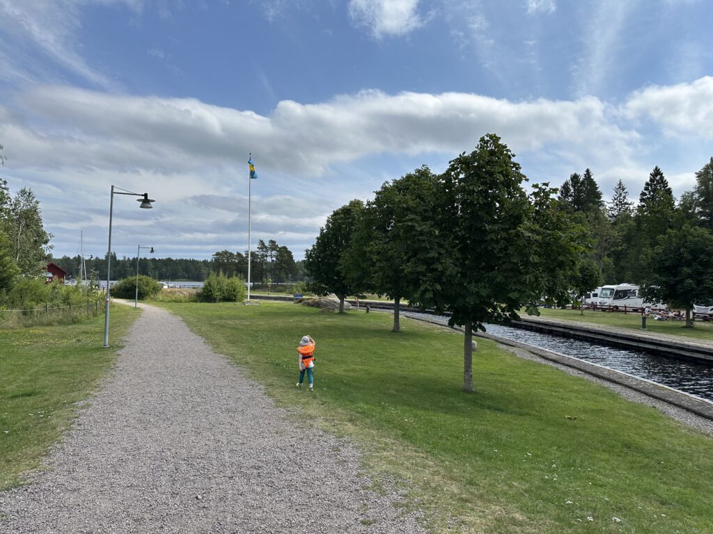 Vormittags gehen wir zum Spielplatz und zum Minigolf (diesmal das in Deutschland bekannte Bahnengolf) spielen. Gegen Mittag legen wir ab und fahren die kurze Strecke rein in den Kanal nach Forsvik. Diese Station wurde uns durch die Familie von der Küste mit den zwei Jungs empfohlen, die den Kanal letztes Jahr durchfahren haben. Hier bekommen wir den letzten Hafenplatz, bisher hatten wir tatsächlich noch keine Probleme mit der Hafenfülle, es wurde uns aber schon berichtet, dass viele Häfen gut gefüllt bis voll sind. Man spürt, dass die Hauptsaisonzeit des Kanals läuft.