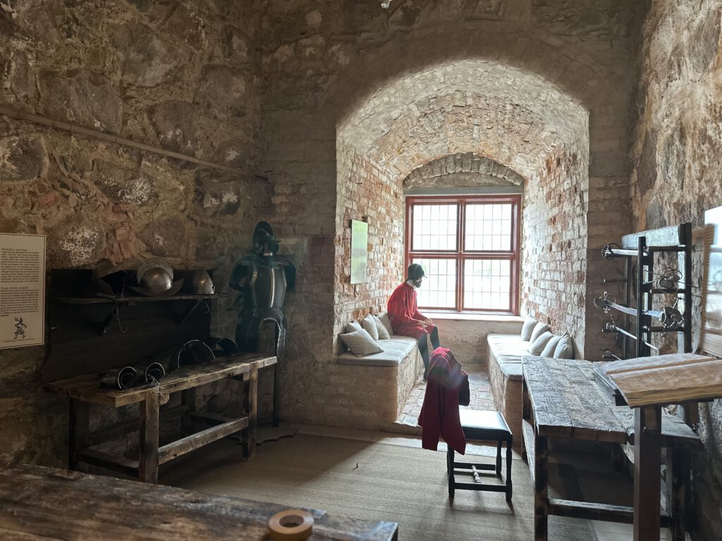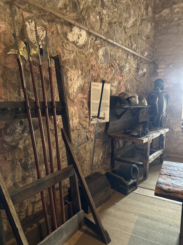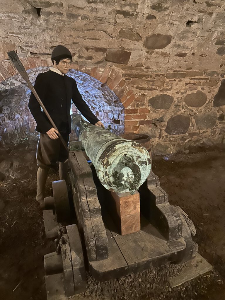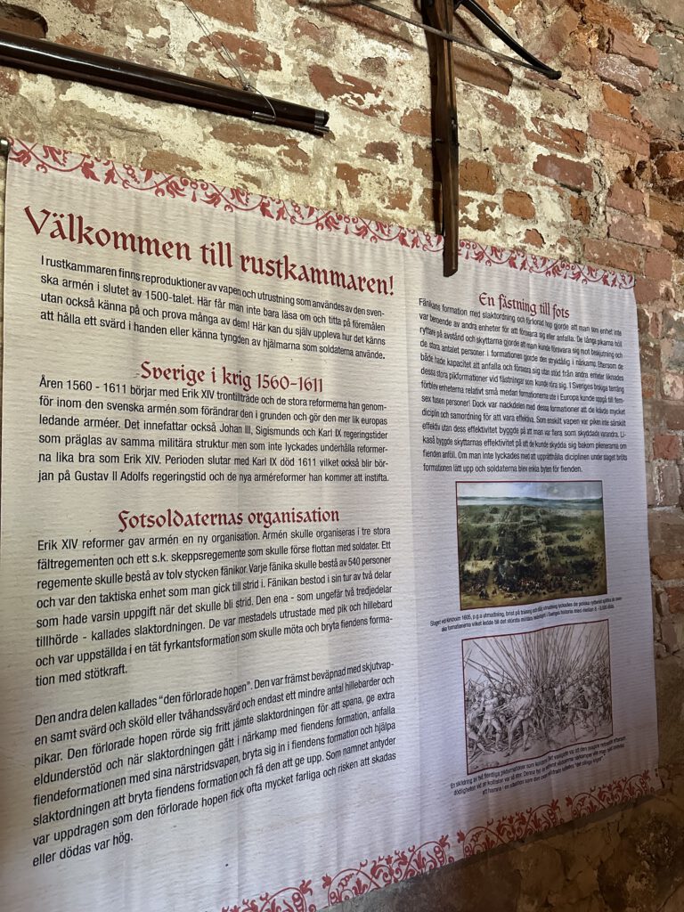 Schloss VadstenaIn der Waffenkammer des SchlossesKanonengangJa, das war dann das Highlight 😉SchlosskücheDiese „Karre“ hat so viel „Wumms“, dass beim Aufdrehen der, nennen wir es Musik, die Wände im Schiff vibrieren !Eigentlich der Beifahrersitz !