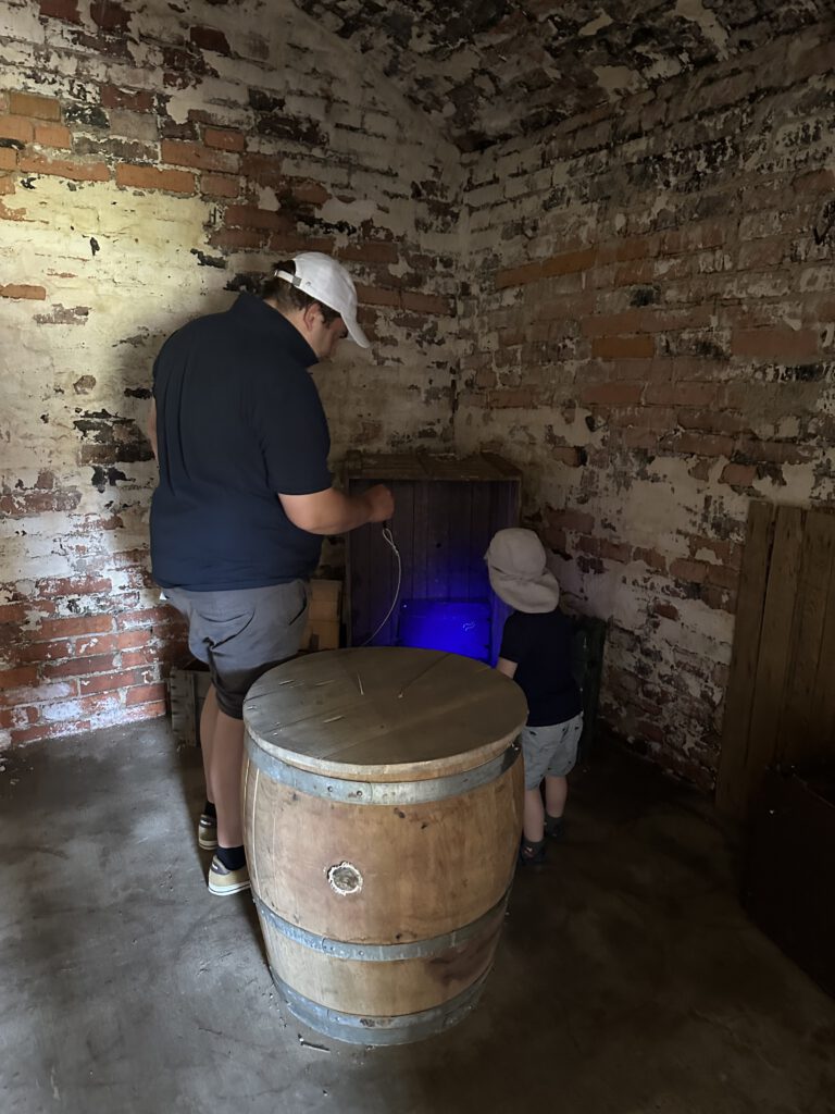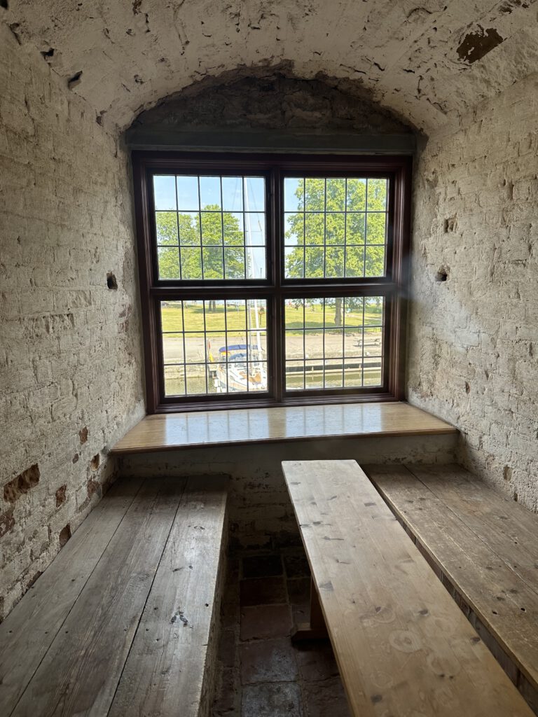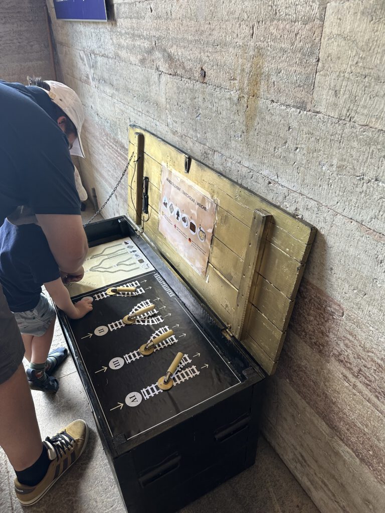 Wir laufen eine halbe Stunde zur Festung und stellen dann fest, dass das Museum inhaltlich nicht für Familien und Kinder geeignet zu sein scheint. Kapitän Wirbelwind hatte auf eine Ritterburg gehofft – ein Glück hatten wir zuvor gelesen, dass man hier eine Art Schatzsuche auf eigene Faust durchführen kann – wie wunderbar! Wir kaufen am Schalter für die Führungen durch die Festung eine Schatzkarte und müssen nun 7 Schatztruhen finden und die dort enthaltenen Rätsel lösen. Wir sammeln damit Zahlen, Buchstaben und Wörter, die am Ende zu einem Code für eine Schatztruhe zusammengesetzt werden müssen. Wir haben viel Spaß – und können die Schatztruhe tatsächlich öffnen. Dort drin enthalten ist ein Säckchen mit 3 „Goldtalern“, wovon zwei gegen ein Eis an dem Ticketkiosk eigelöst werden können. Ein perfekter Abschluss!