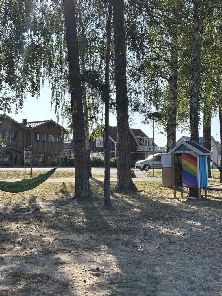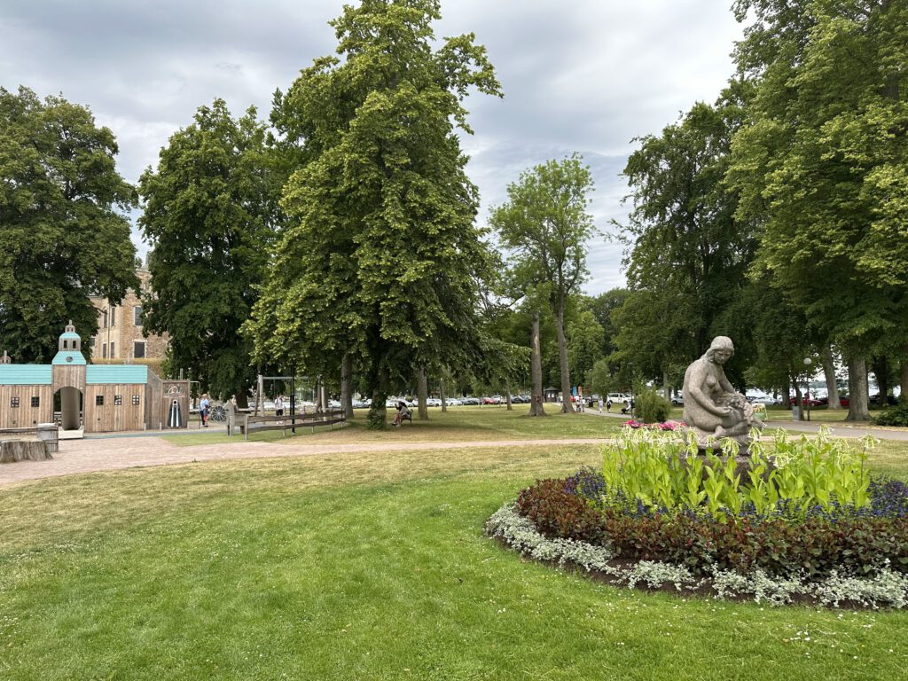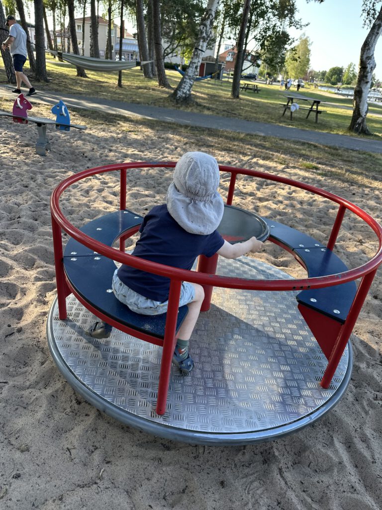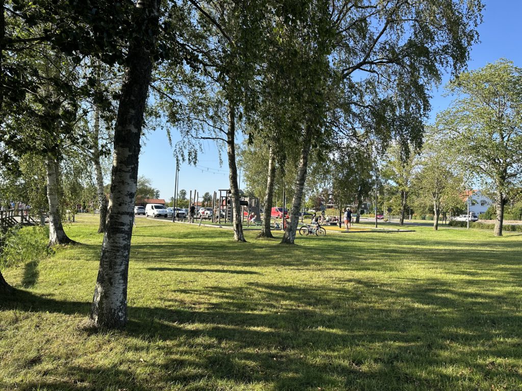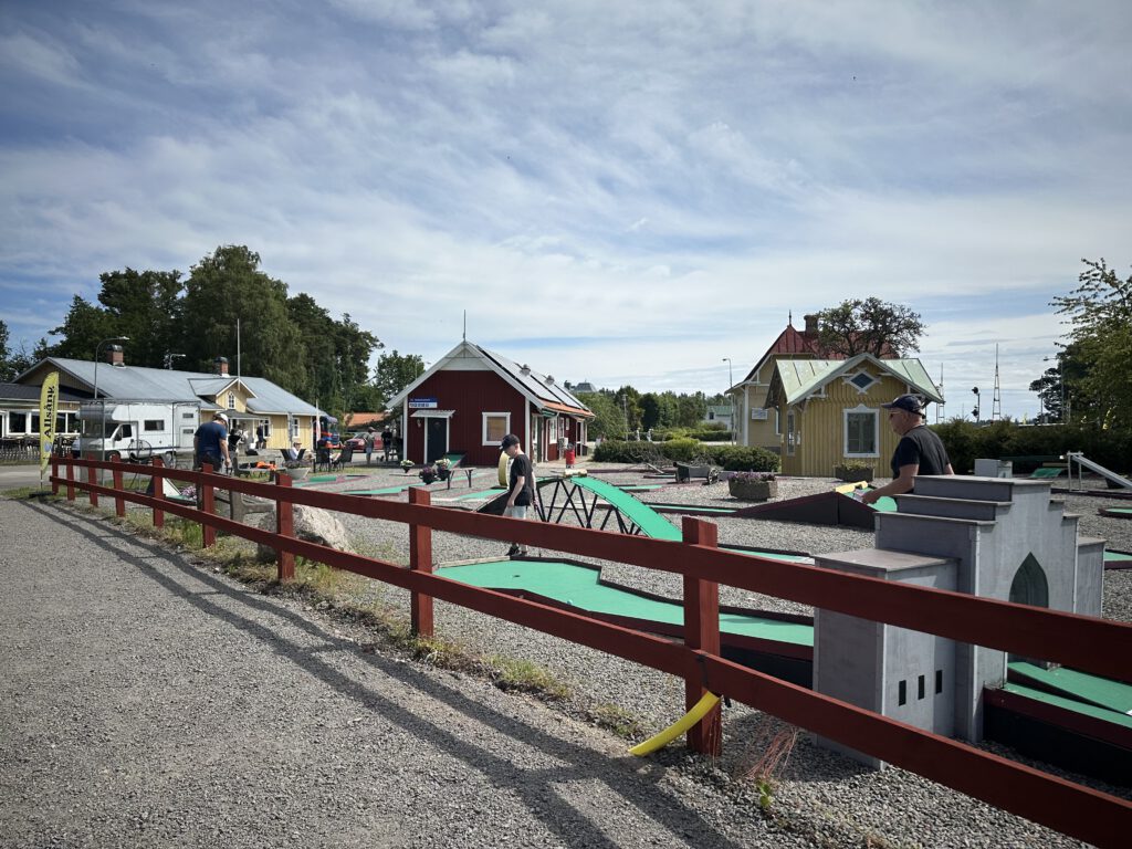 Wir kommen nach Töreboda und es gefällt uns gar nicht, es ist sehr industriell hier. Wir fahren weiter und kommen in eine schönere Gegen des Städtchens, sehen Spielplatz, Parkgolf und Eisladen und halten spontan an. Hier wollen wir die nächste Nacht verbringen – zudem gibt es einen Coop-Supermarkt direkt um die Ecke.