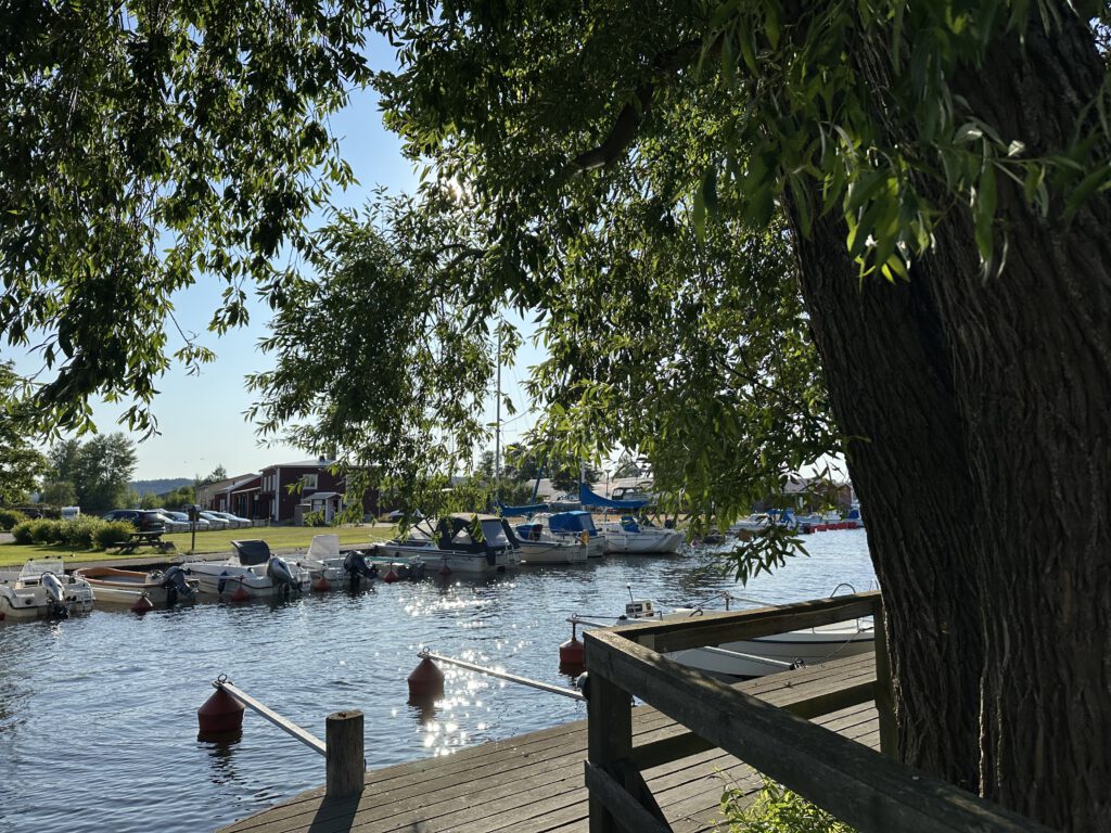 Wir verlassen morgens den Holzsteg und machen uns auf Richtung Töreboda. Wir wissen noch nicht, wo wir heute anhalten werden, sondern fahren erstmal los.