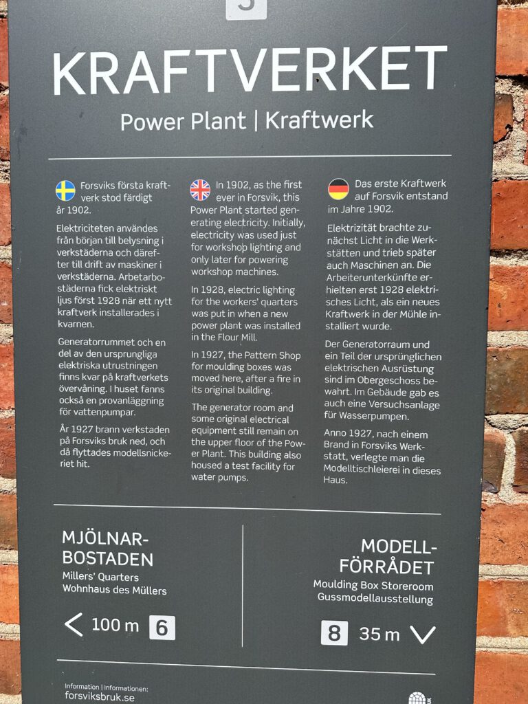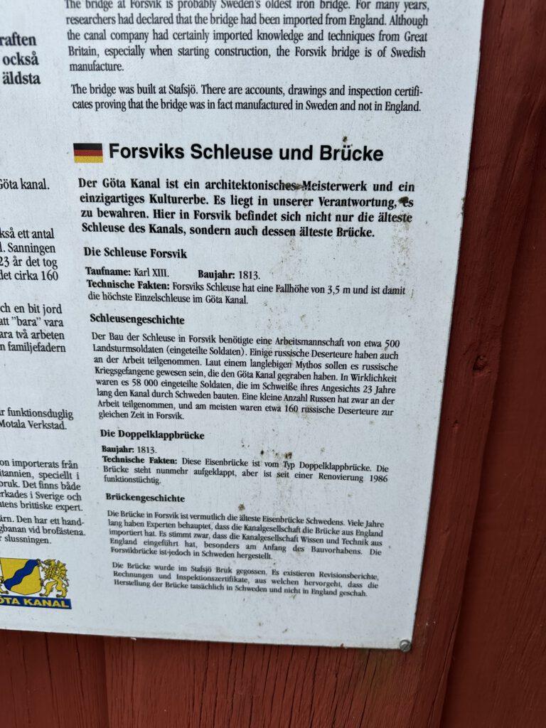 Das Internet weiß Folgendes zu: Forsviks Bruk ist ein historisches Industriegebiet in Forsvik, einem kleinen Ort in der Gemeinde Karlsborg in Västergötland, Schweden. Es handelt sich um eines der ältesten industriellen Zentren des Landes mit Wurzeln bis ins 13. Jahrhundert. Heute ist es ein industrielles Freilichtmuseum und ein bedeutendes Kulturdenkmal.