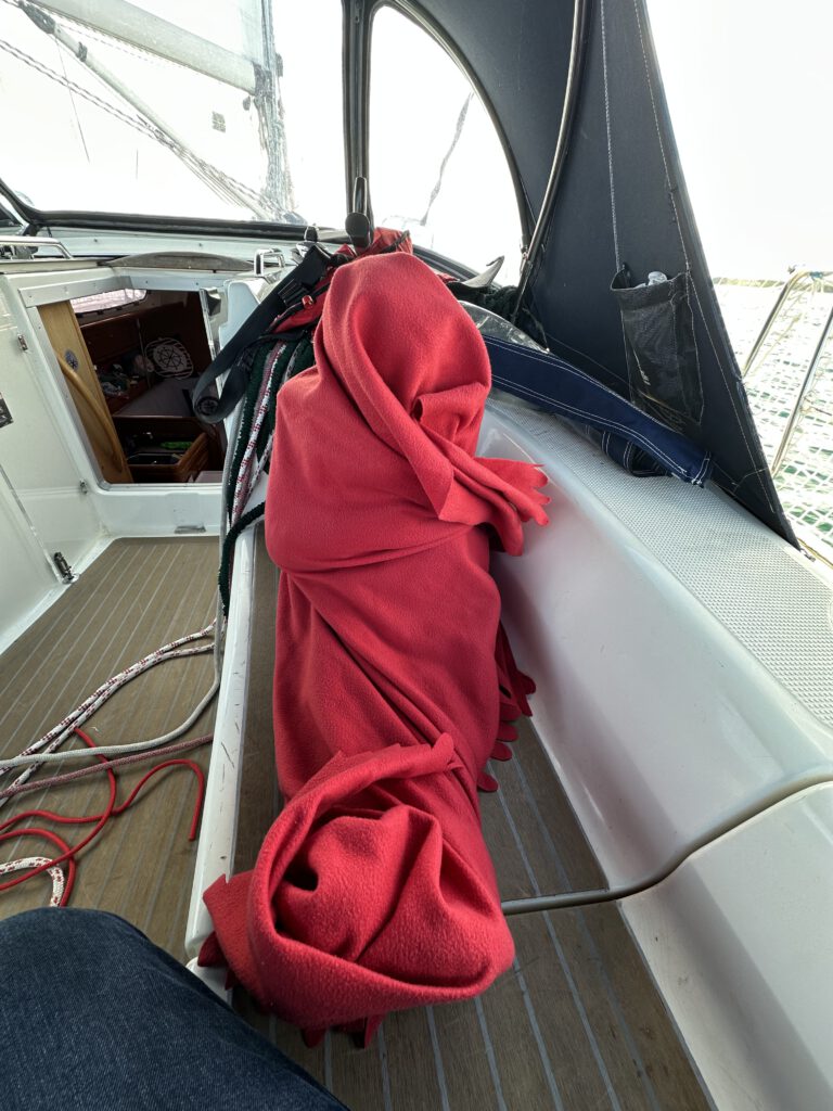 Julia und der Mini Matrose haben aber Glück, zu den Zeiten, wo es besonders schaukelig ist, sind grad die Schläfchen angesagt, sodass sie in der Waagerechten die angenehmste Position haben. Kapitän Wirbelwind und ich sind oben in der Plicht und hören Kinderhörbücher. Das können wir stundenlang tun und haben auch schon sehr viele Geschichten durch. Paddington, Sams (diverse), Das kleine Gespenst, die kleine Fledermaus Wegda etc…