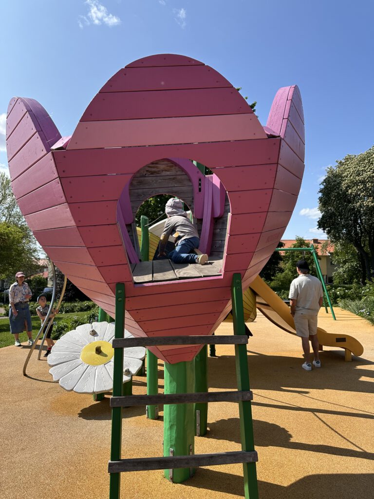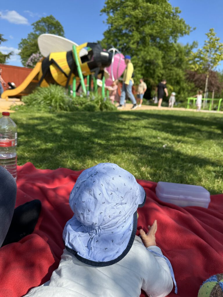 Paul fährt am Nachmittag noch mal zu einem Supermarkt und ich gehe mit den beiden Kids in einen super schönen Park mit süßem Spielplatz in der Stadt und wir machen ein kleines Picknick.