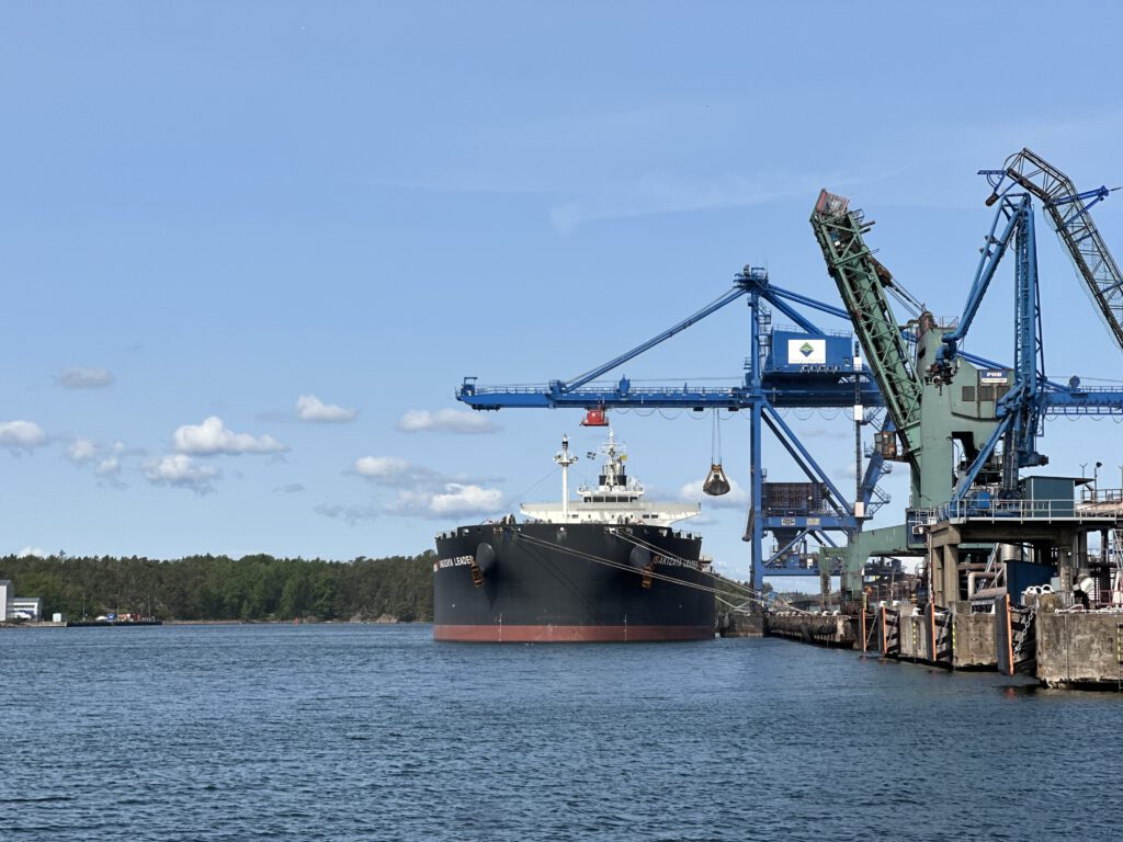 Ein Kohlefrachter, der in Oxelösund entladen wird.