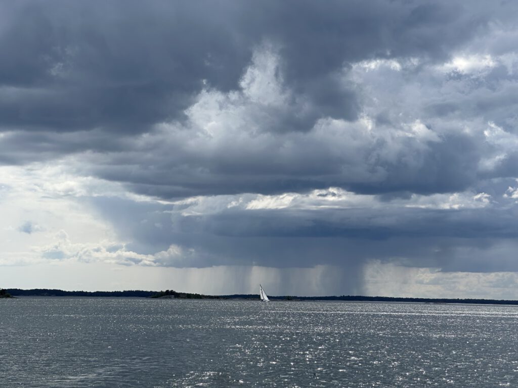 Je näher wir Trosa kommen, desto dunkler wird der Himmel, es ist Regen vorhergesagt.