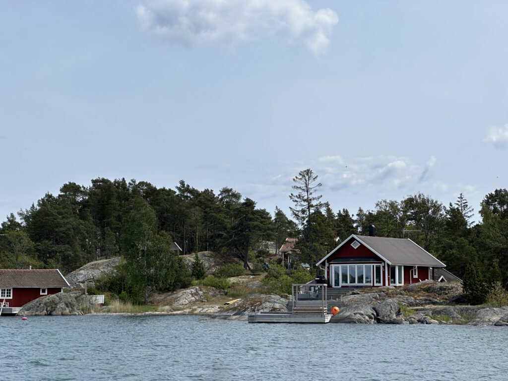 Viele Häuser in Schweden liegen direkt am Wasser mit eigenen Steg.