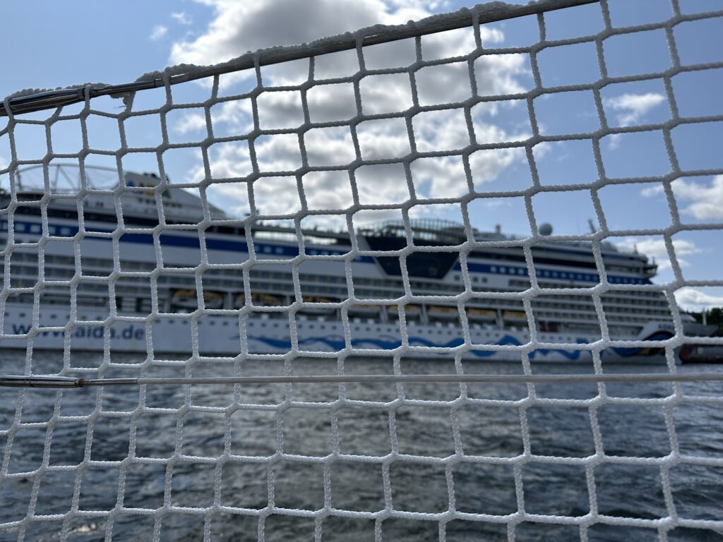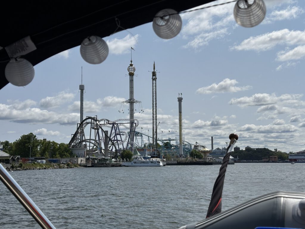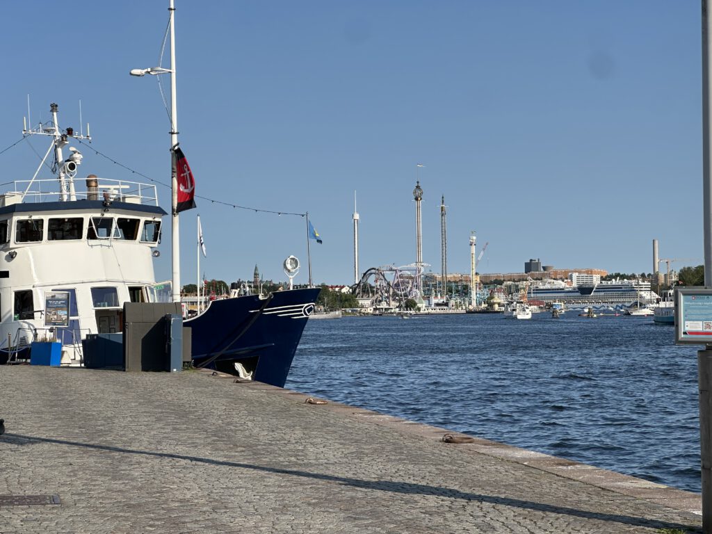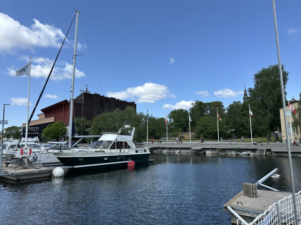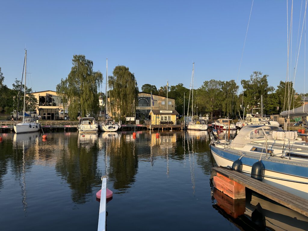 Wir fahren gegen 10 Uhr los (?) und holen den Anker ein, gegen 13 Uhr kommen wir schon in Stockholm an. Der Hafen ist noch verhältnismäßig leer, wir haben noch viel Auswahl für einen Liegeplatz. Nach der Ankunft essen wir erstmal zu Mittag und gehen zum „Nachtisch“ zur Eisdiele direkt am Hafen.