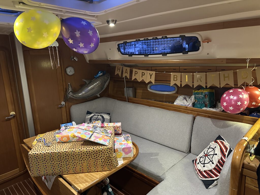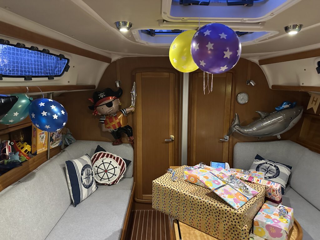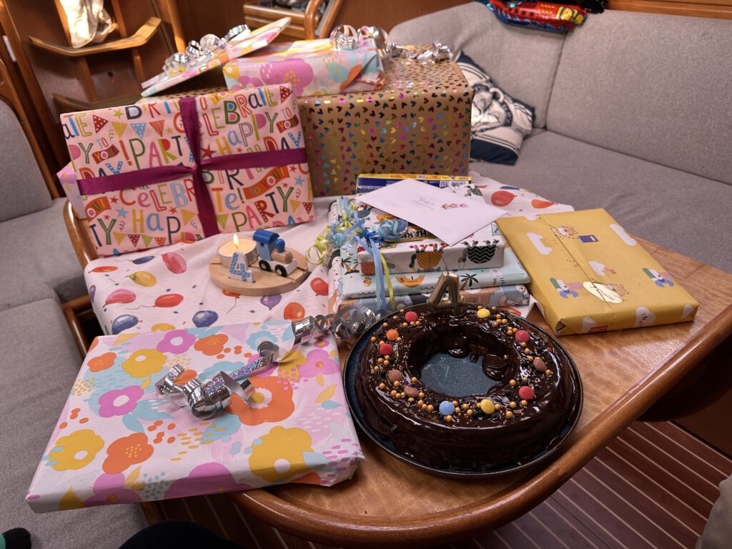 Morgen steht der erste von zwei Crewgeburtstagen an, heute wird ein langer Abend! Wir müssen noch einige Geschenke einpacken, dekorieren für den Piratenfan und den gewünschten Schokokuchen backen.