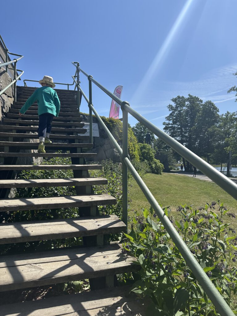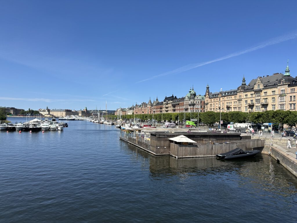 Den Vormittag verbringen wir mit frühstücken, Geschenke auspacken und einem ersten Stück Kuchen. Am späten Vormittag laufen wir los zum Technischen Museum Stockholm, dies hatte sich Theo gewünscht. Der Weg ist recht weit, aber wir laufen die ganze Zeit am Wasser entlang und das Wetter ist wunderbar!