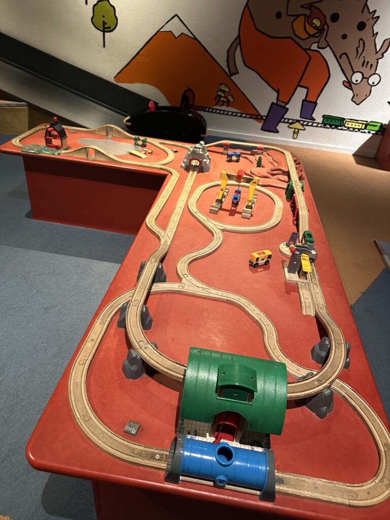 Der Spielplatz vor dem Museum ist ein Mathematikspielplatz, das Museum selbst ist voll mit Bildschirmen. In den ersten Räumen sind wir Erwachsenen erstmal ziemlich enttäuscht und fragen uns, ob wir einen Fehler gemacht haben, herzukommen. Dann gehen wir noch in einen Raum im UG, der uns am Eingang noch empfohlen wurde, und endlich finden wir das, was wir vor Augen hatten – Viel zum Ausprobieren, keine Bildschirme die nur ablenken, kindgerechte Themen. Ein Glück sind wir noch hergekommen! Tatsächlich ist das Geburtstagskind vom gesamten Museum begeistert und fragt uns ein paar Tage später sogar, ob wir nochmal in das Museum gehen könnten.