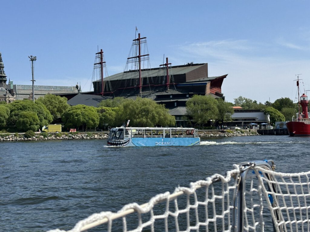 Bei der Ausfahrt aus dem Hafen und der Stadt sehen wir das spannende Reptilienfahrzeug (Touribus vom Geburtstag von Kapitän Wirbelwind) erneut und drehen noch eine Runde, bis wir rausfahren und ordentlich durch die Wellen der vielen schnellen Motorboote durchgeschaukelt. Bei Kapitän Wirbelwind führt dies dazu, dass er halb auf seinen Spielfiguren liegend in den Schlaf geschaukelt wird.