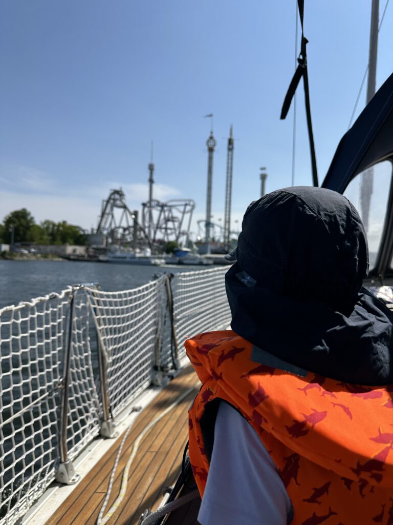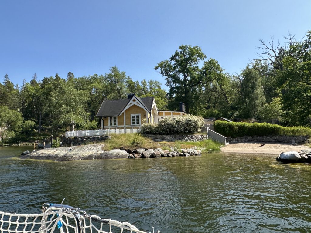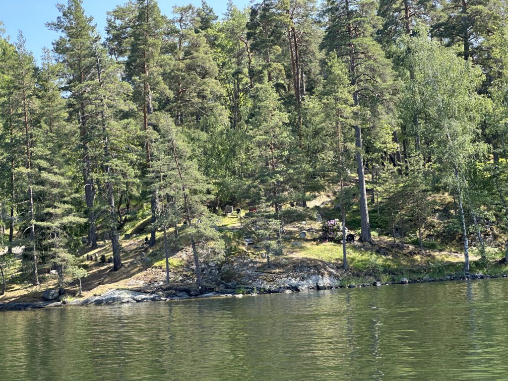 Ich nutze die Ruhe und lege mich zum Mini Matrosen in die Koje, auch ich brauche etwas Schlaf. Diesmal fahren wir auf einem direkteren Wege durch die Schären aus der Stadt. Wunderschön! Wir kommen sogar an zwei Friedhöfen direkt am Wasser vorbei. Ich denke friedvolle und idyllischer kann die letzte Ruhestätte wirklich nicht sein.