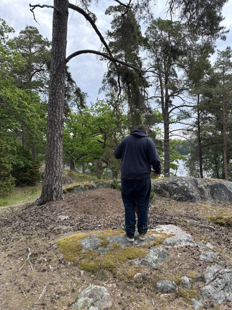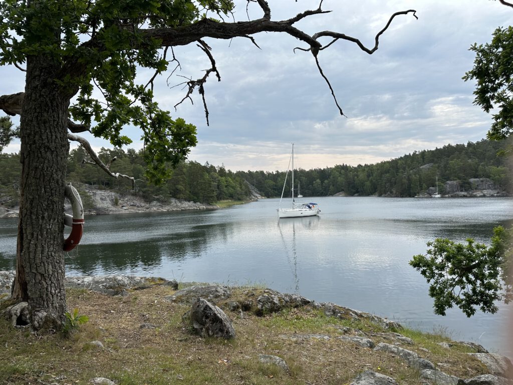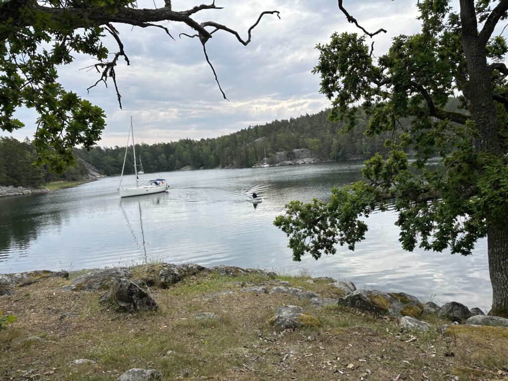Wir besuchen mit dem Dinghi diese wunderschöne Schäreninsel, die voll bevölkert ist – mit Waldameisen. So etwas haben wir noch nicht gesehen! Man könnte denken, Schäreninsel, besteht aus Stein, ein paar Nadelbäume drauf, fertig. Aber nein, weit gefehlt. Jede Bucht und jede Schäre ist auf ihre Weise wunderschön und jede bietet andere Natur, andere Pflanzen und Bewuchs. Wir fahren nach dem Frühstück rüber und merken schnell, dass wir nicht lange stehen bleiben dürfen – sonst haben wir direkt Waldameisen auf den Schuhen!