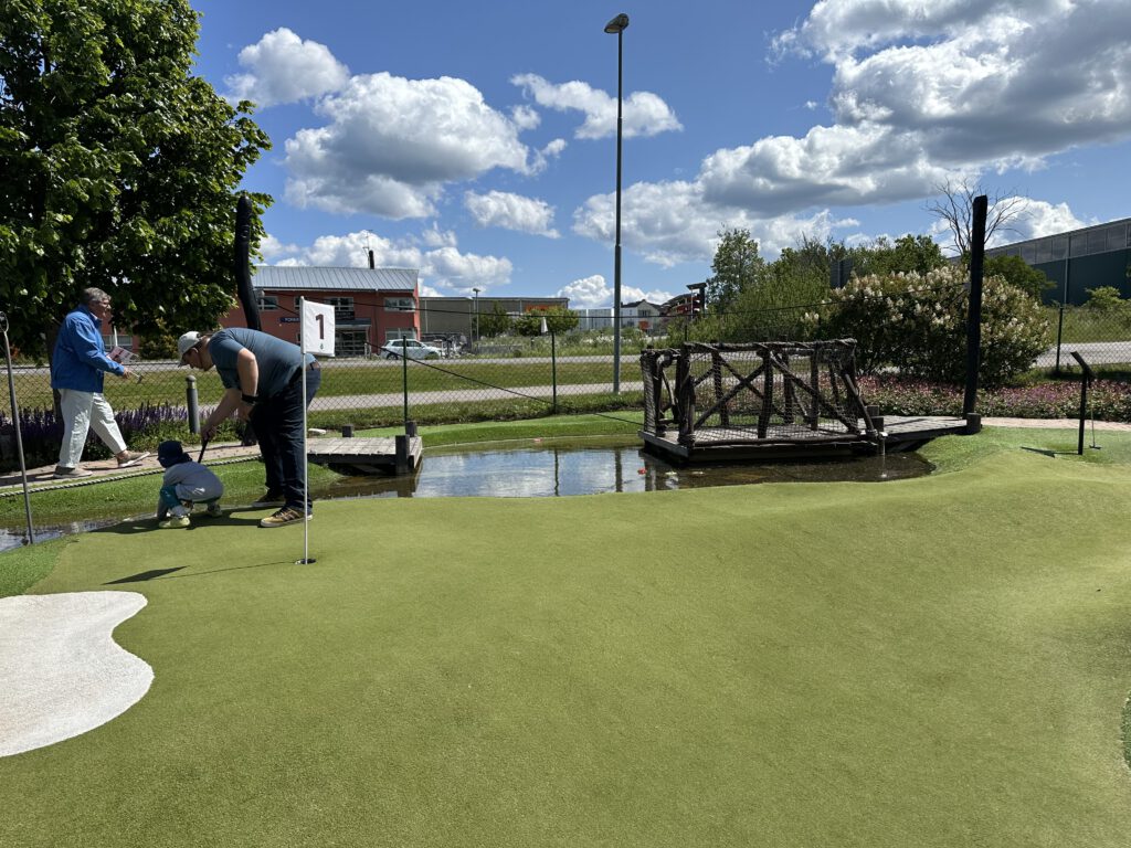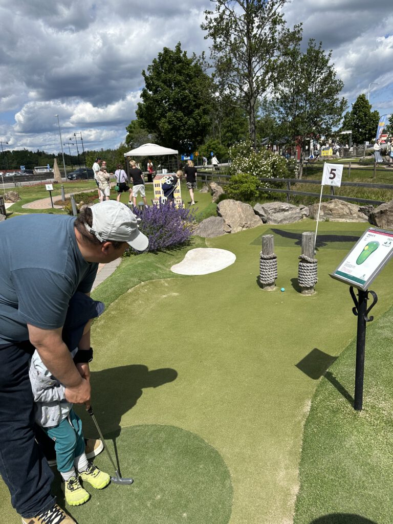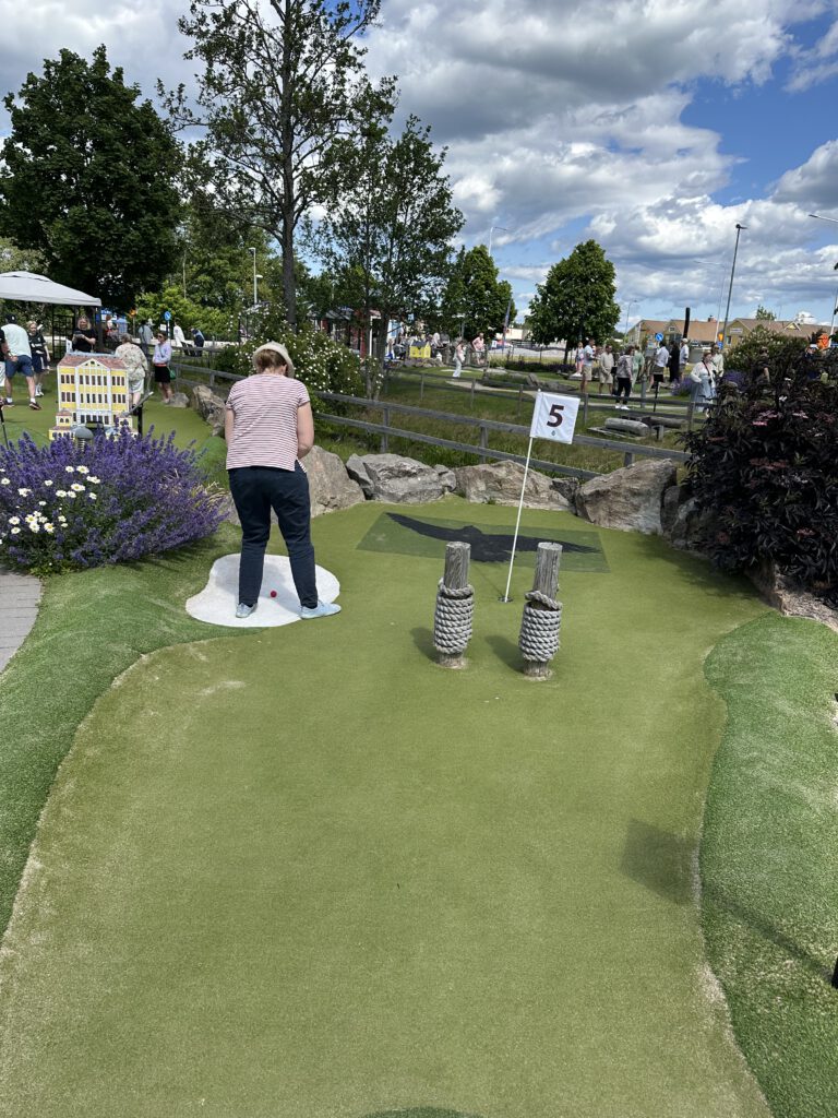 Nun zum Glück wieder geöffnet, das Parkgolf! Minigolf ist in Schweden wie eine kleine Nationsalsportart, jedoch nicht mit so zum große Teil sehr lieblosen Anlagen, sondern hier macht das Spielen und das Bewegen auf dem Gelände mit dem Wasser und den schönen Bepflanzungen richtig Spaß!