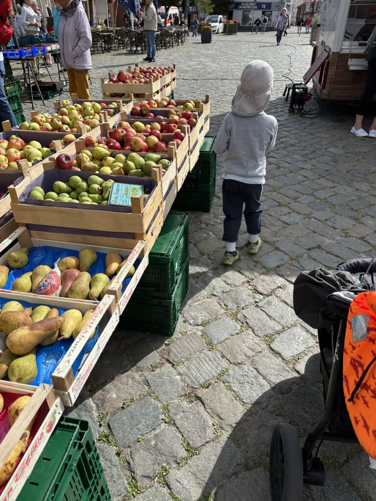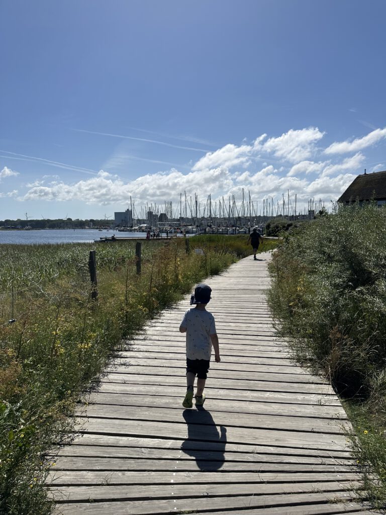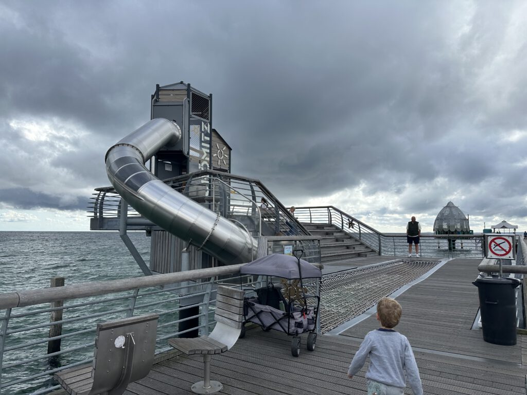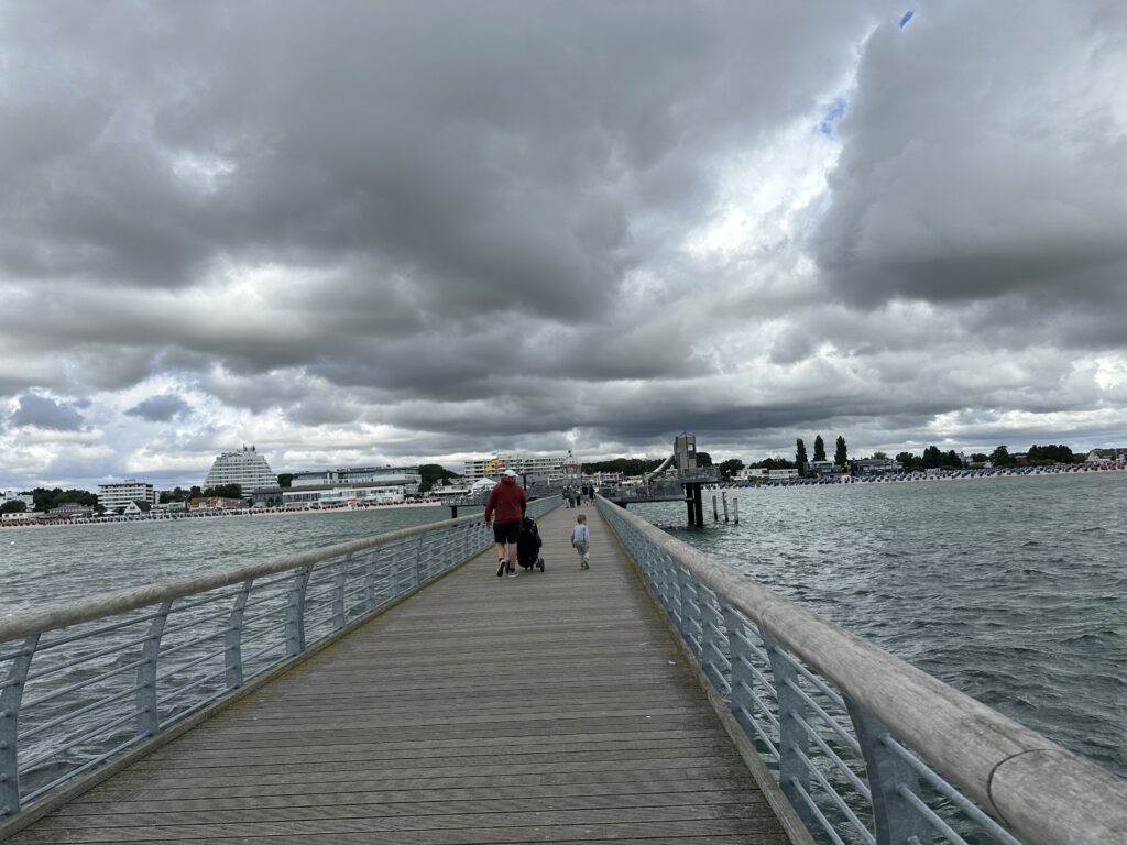 Heute Vormittag laufe ich mit den Kindern auf Wunsch eines einzelnen (kleinen) Herrn nochmal zur Seebrücke, das sind locker 20-25 min pro Richtung. Je nachdem, wie häufig an Spielplätzen angehalten wird oder Fragen gestellt werden.