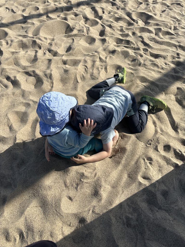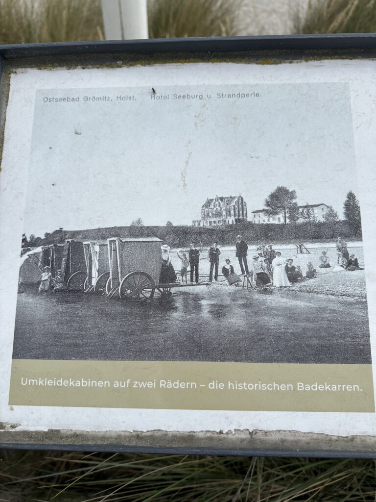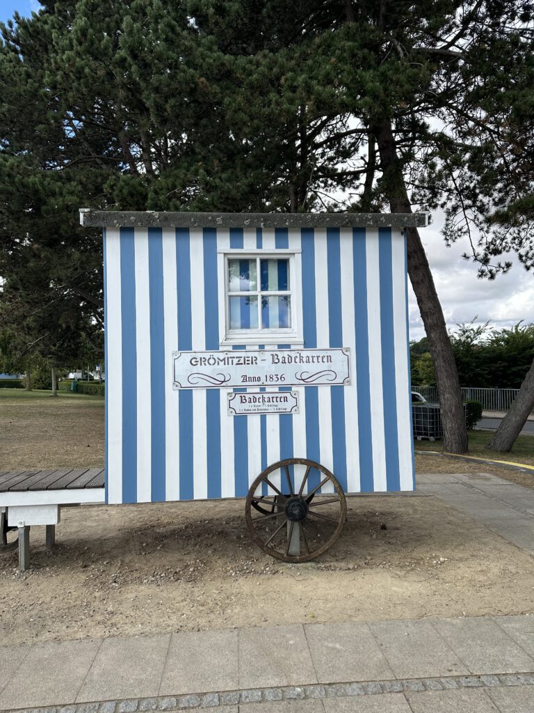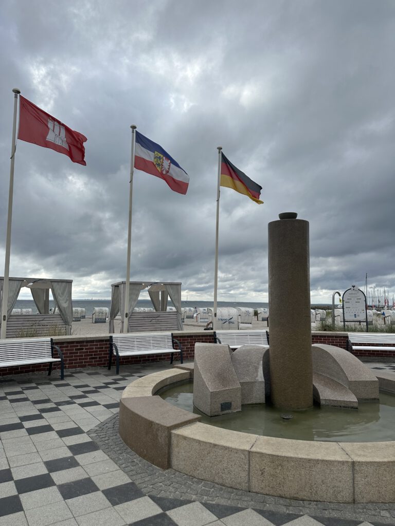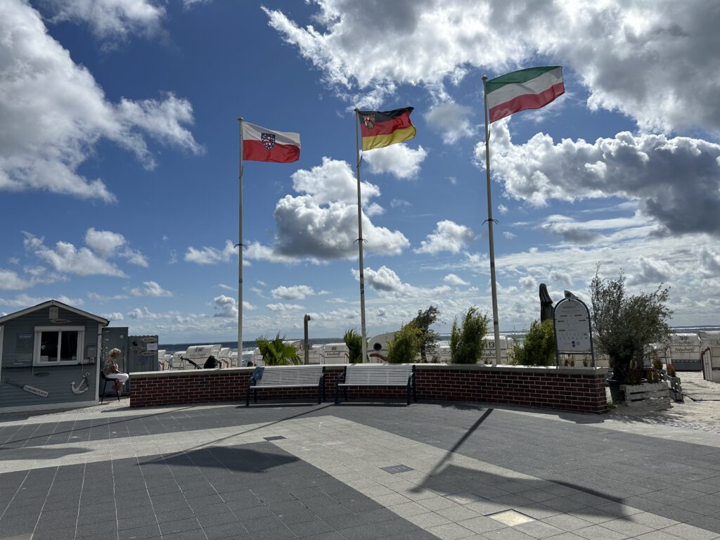 Heute passt endlich das Wetter und wir gehen vormittags an den Strand- an den Abschnitt, der am Hafen liegt und nicht an der Seebrücke. Wir sind direkt um kurz vor 10 Uhr da und außer uns sind vielleicht noch 3 Leute da. Interessanterweise, obwohl alles leer ist und die volle Wahlfreiheit bezüglich eines Platzes besteht, baut tatsächlich jemand seine Strandmuschel etc. 3 m hinter uns auf. Ich tippe mal, weil er mit seiner Partnerin gestern schon an diesem Platz lagen? Wir sind echt wieder zurück in Deutschland… oh Mann! Dafür kann ich aus der näheren Entfernung beobachten, was er für verschiedene Matten dort hineinlegt, wo der Sand hindurchfallen kann und ihre Liegen/Matratzen bewundern, die man trotz fehlendem Gestell anklappen kann für eine halbliegende Nutzung. Also ich fühle mich gut unterhalten! Wir genießen die Zeit am Strand bei dem gutem Wetter sehr und hauen gegen halb 12 dann ab, als die anderen Strandbesucher ihre Handtücher beginnen auszubreiten.