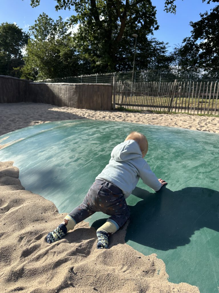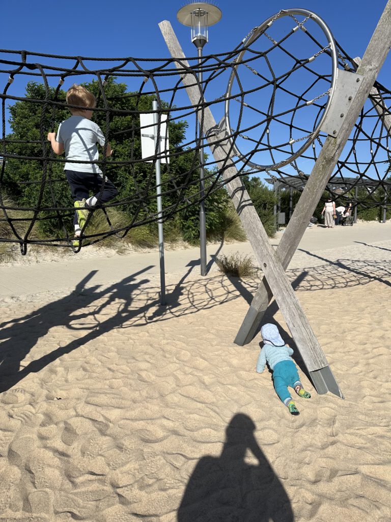 Der Spielplatz am Hafen ist heute so überlaufen, dass ich froh bin, auf Google Maps noch einen tollen Kletterspielplatz am Binnensee zu finden. Ein Volltreffer !!! Kapitän Wirbelwind klettert ganze 5 mal durch den Kletterparcours und klettert selbst den geschätzt 7-Jährigen anderen Kids davon bzw. Lässt sich von diesen nicht einholen. Paul kommt dazu, als er allen Pfand weggebracht habt. Das schafft nun viel Platz an Bord!