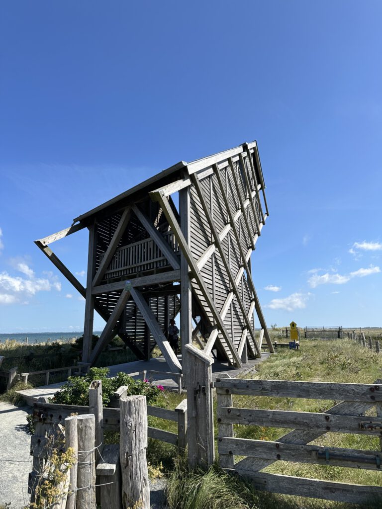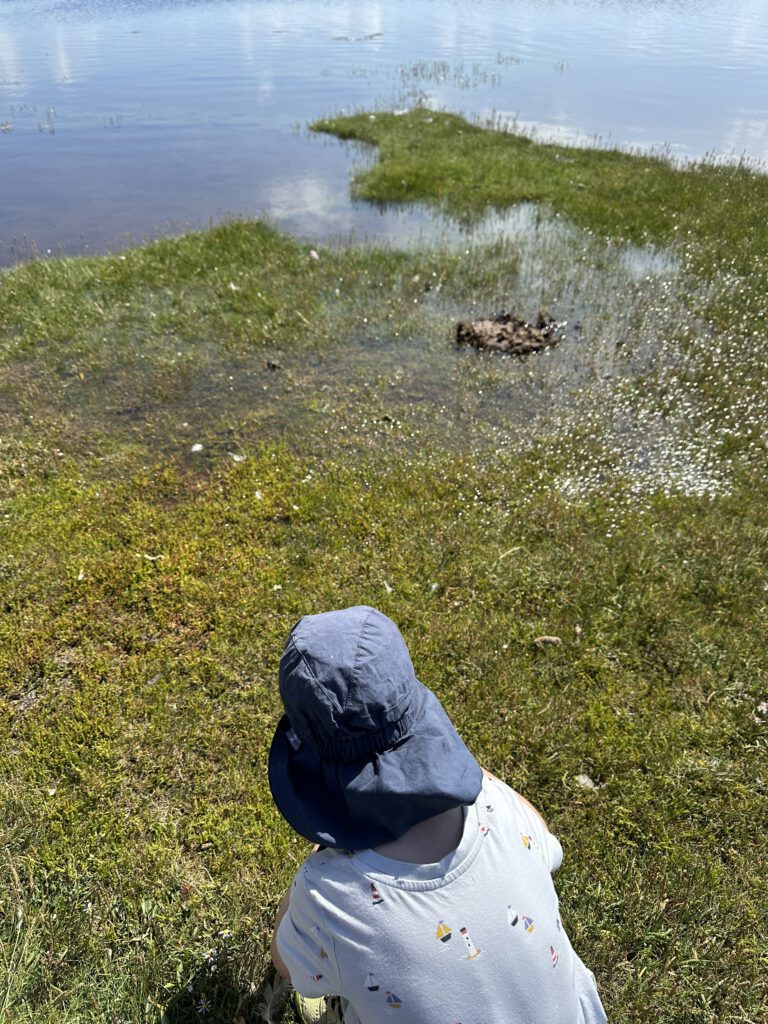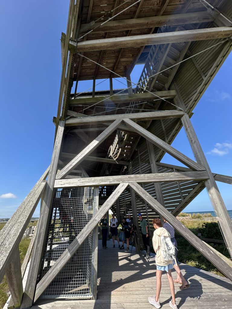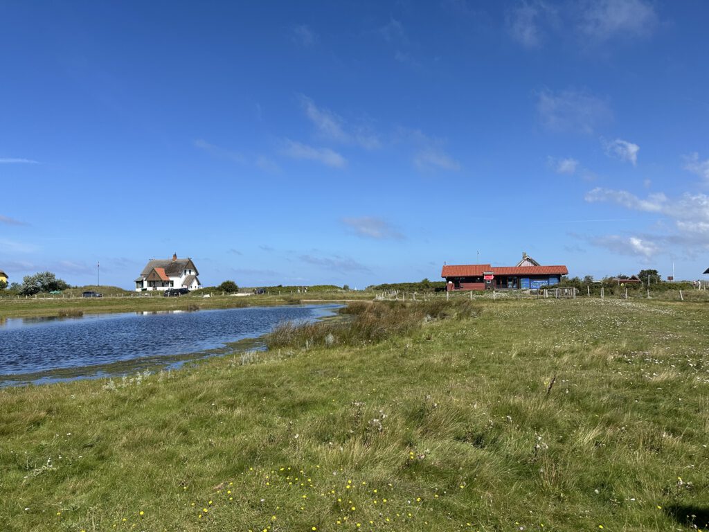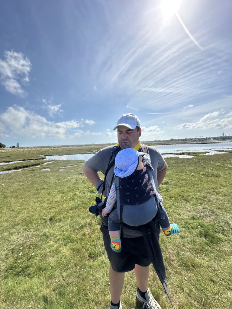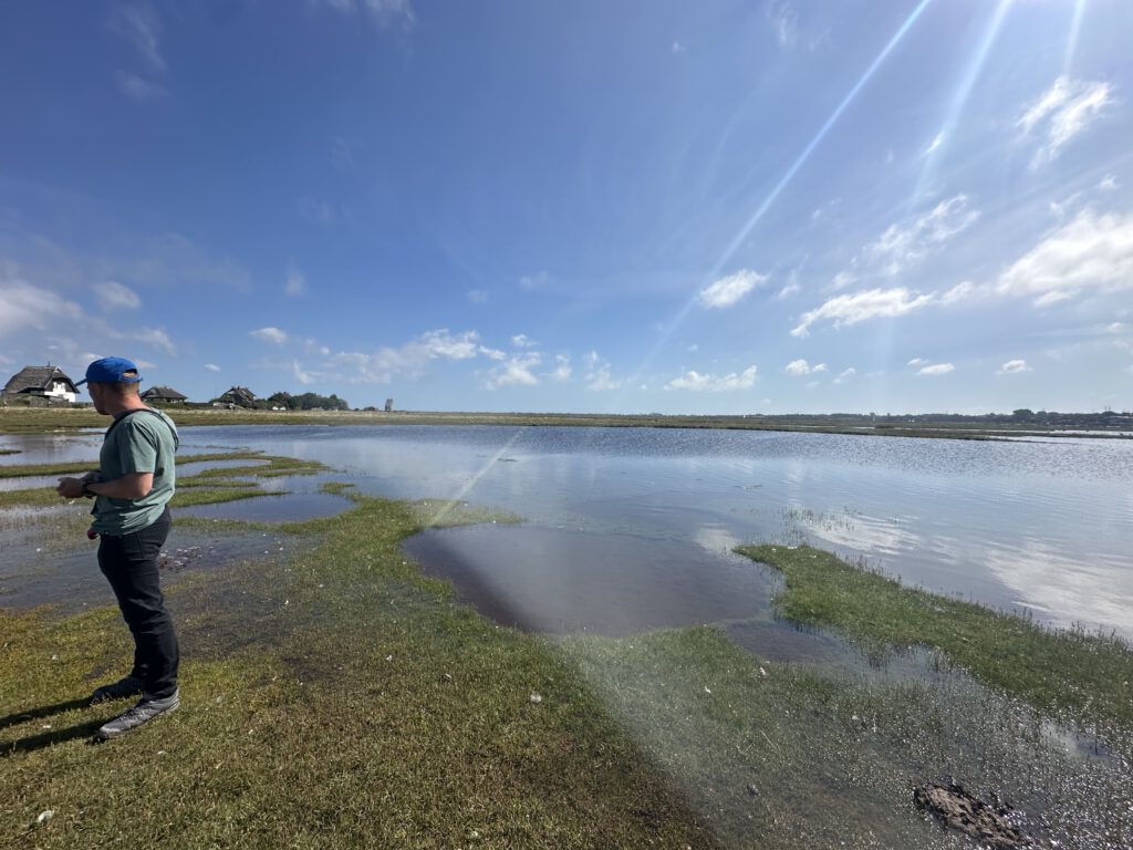 Ich hatte bei Maps gelesen, dass der NABU auf Graswarder im Sommer zweimal täglich Führungen und Vogelbeobachtungen anbietet. Wir waren nun schon so häufig in Heiligenhafen und auf Graswarder, dass wir gern etwas erfahren möchten über die Flora und Fauna hier. Die Führung geht ganze 2 Stunden und das ist schon das äußerte mit zwei kleinen Kindern. Der Führer ist hier ehrenamtlich tätig und studierter Biologe, leider wirklich nicht sympathisch- heute war sein letzter Tag (ihre Einsätze gehen immer 2 Wochen am Stück und dann kommt jemand Anderes), vielleicht war er auch nur erschöpft von den 14 Führungen, die er in kurzer Zeit gegeben hatte. Wir lernten einiges über die Pflanzen hier, er klärte uns, dass die Hundsrose (Rosa canina), die nahezu jeder mit der Ostseeküste in Verbindung bringt, eigentlich nicht hierhergehört ( und invasiv ist) und andere Pflanzen überwuchern kann und damit eine Gefahr für die einheimische Flora darstellt. Wir beobachten sogar einen Grünschenkel mit dem Ferngas, welches wir mitgebracht haben (man kann sich sonst auch vom NABU welche ausleihen), dieser ist wohl nicht sehr häufig während der Führungen zu sehen. Der Führer erzählt, wie der Mensch in die Natur eingreift, Lebensräume begrenzt und der Tourismus immer mehr Raum einnimmt und Müll hierherbringt.