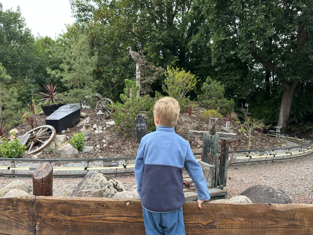 Zum Schluss wollen wir eigentlich noch mit der Crazy Mine, einer größeren Achterbahn, fahren – leider haben wir die Mindestgröße übersehen. Fazit: Der Kapitän ist noch zu klein. Macht nichts – also lieber noch zwei Runden mit der „Schlange von Midgard“, bevor der Park seine Tore schließt.