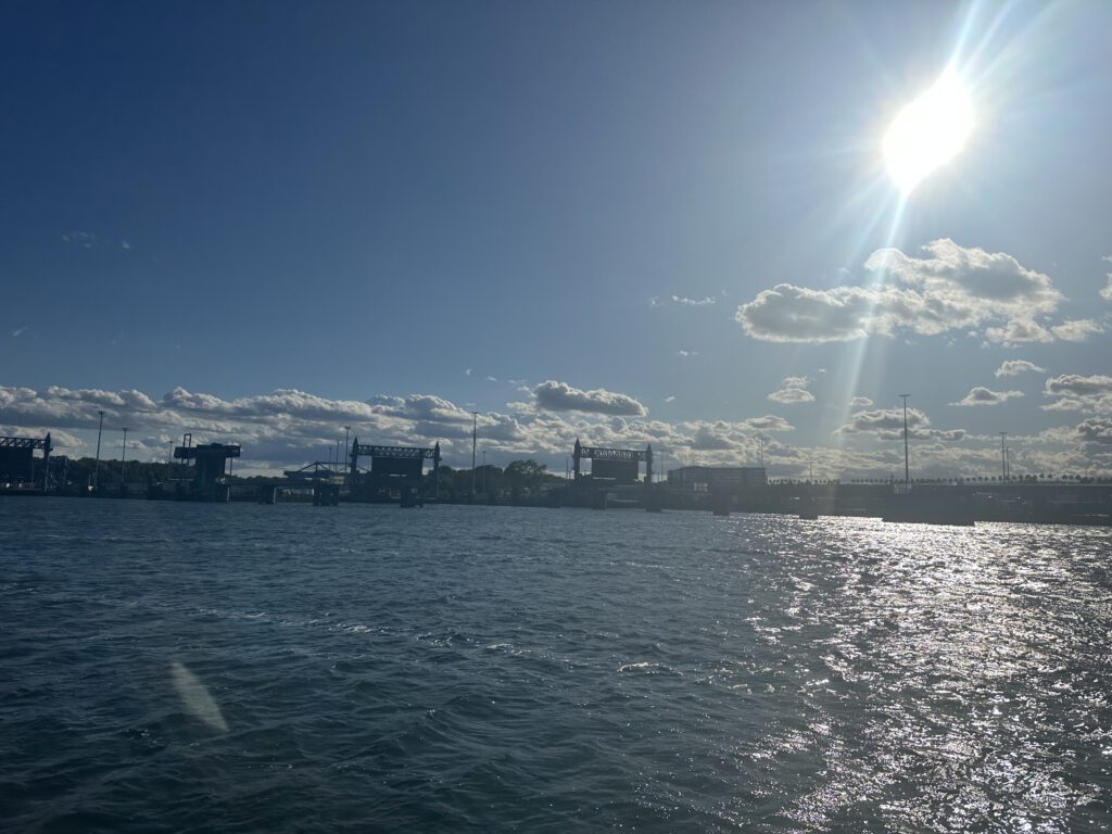 Paul bemüht sich auf der Rücktour zum Schiff, dass der Mini Matrose nicht nochmal einschläft, da wir gleich an Bord alle zusammen Mittagsruhe machen möchten (und nach dem vielen Input der Führung auch müssen 😆), und so habe vor allem ich Glück und wir können die Pause wirklich alle nutzen, um uns auszuruhen oder wie im Falle von uns Eltern, etwas Schlaf der letzten Nächte nachzuholen, naja wenigstens ein kleines bisschen davon.