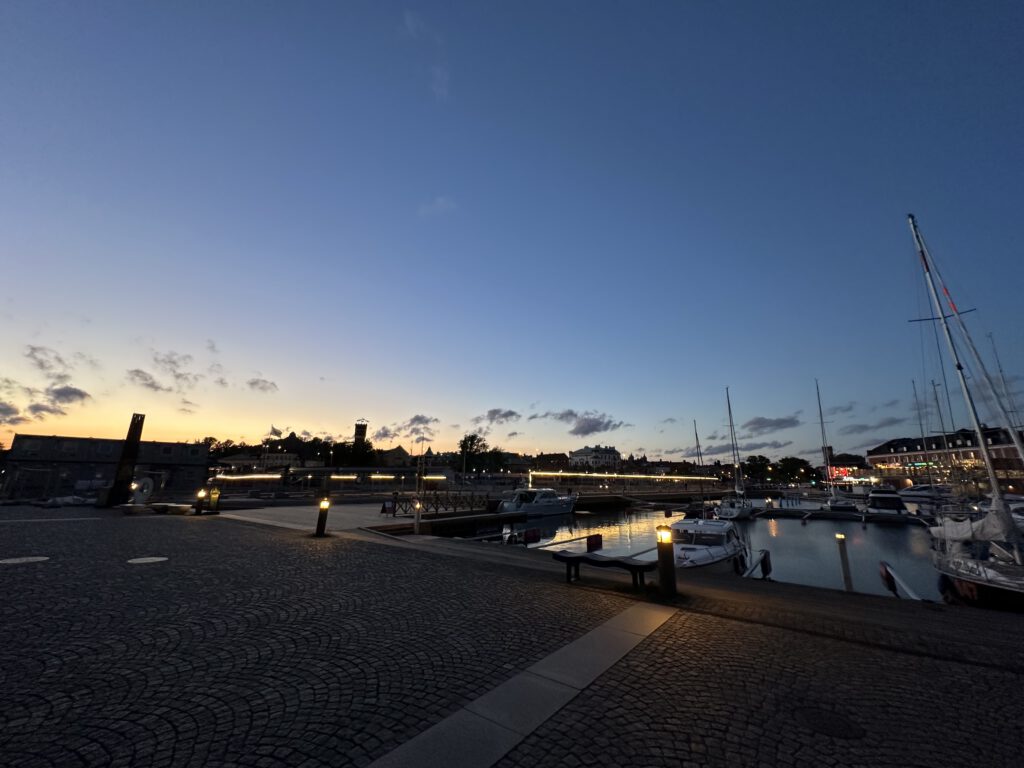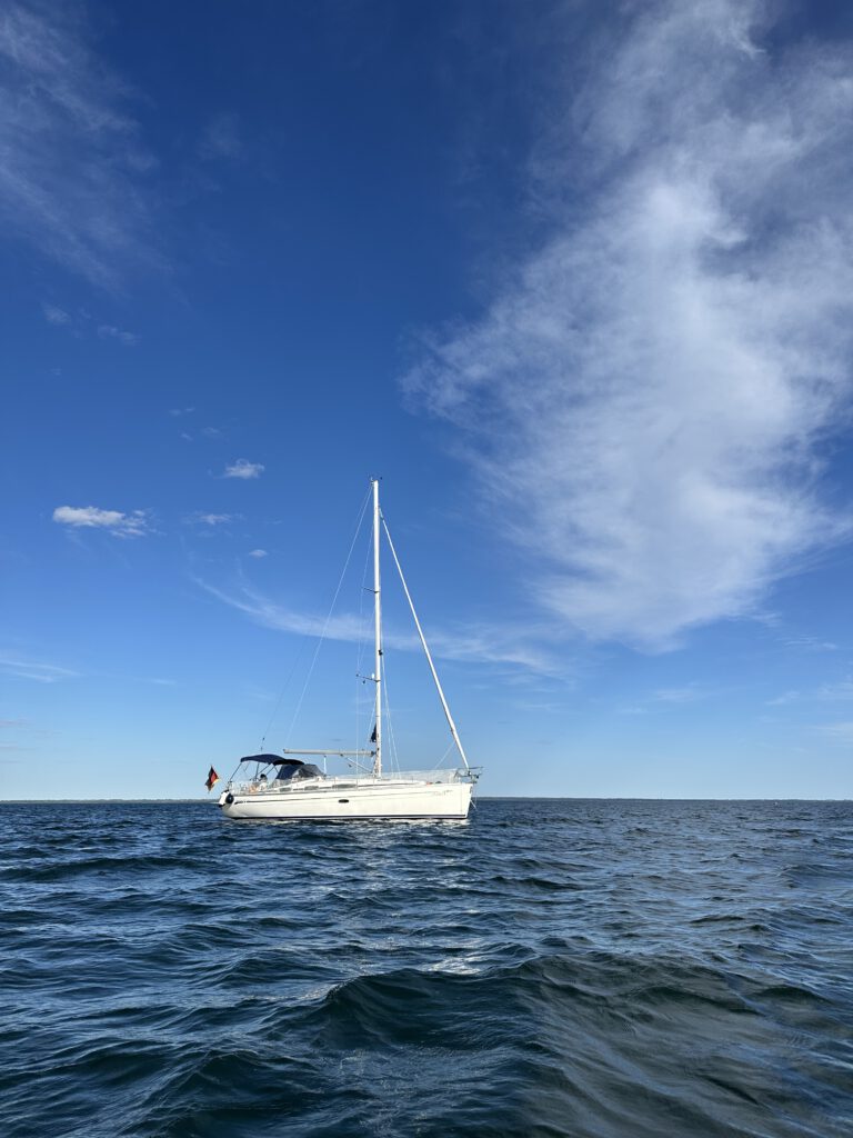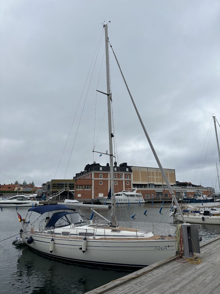 Abends bemerken wir, wie voll der Hafen wieder geworden ist, nachdem die letzten Tage eher leer waren. Es sind viele Deutsche in den Hafen gekommen, neben uns legt sogar ein älteres Ehepaar aus Berlin mit einer ziemlich neuen Hanse-Yacht an.